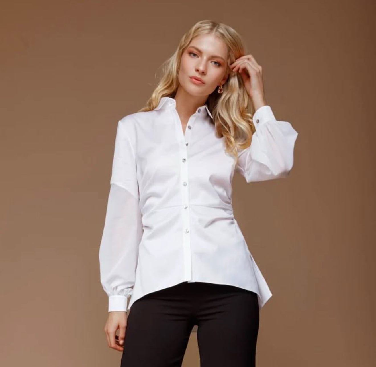 AndTate - Camisa Manga Longa com Franzido Lateral Branco