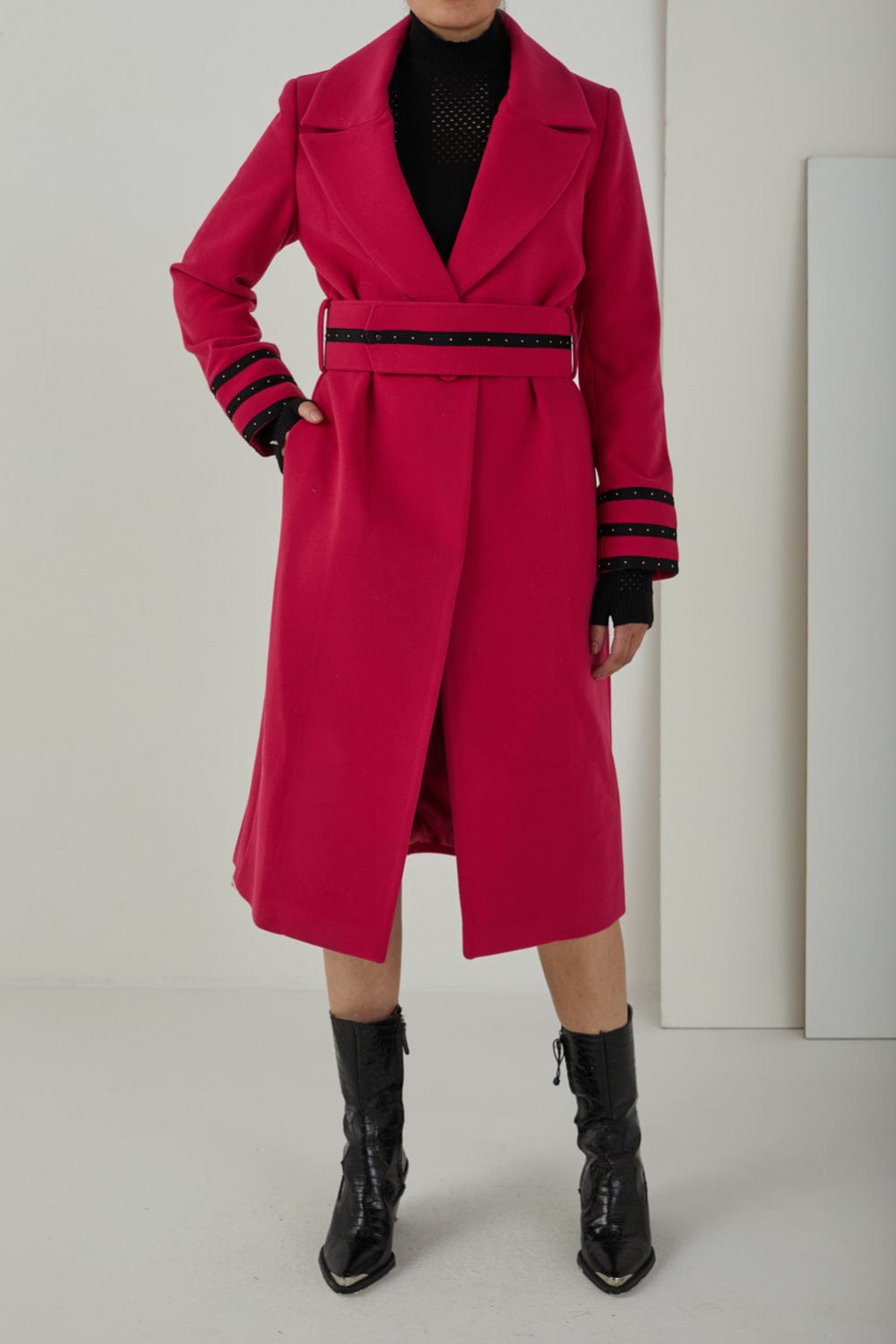 Access - Sobretudo Longo com Cinto Rosa