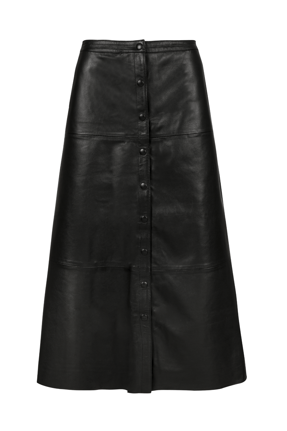 Lou Andrea - Saia Midi com Botões Frontais 100% Couro