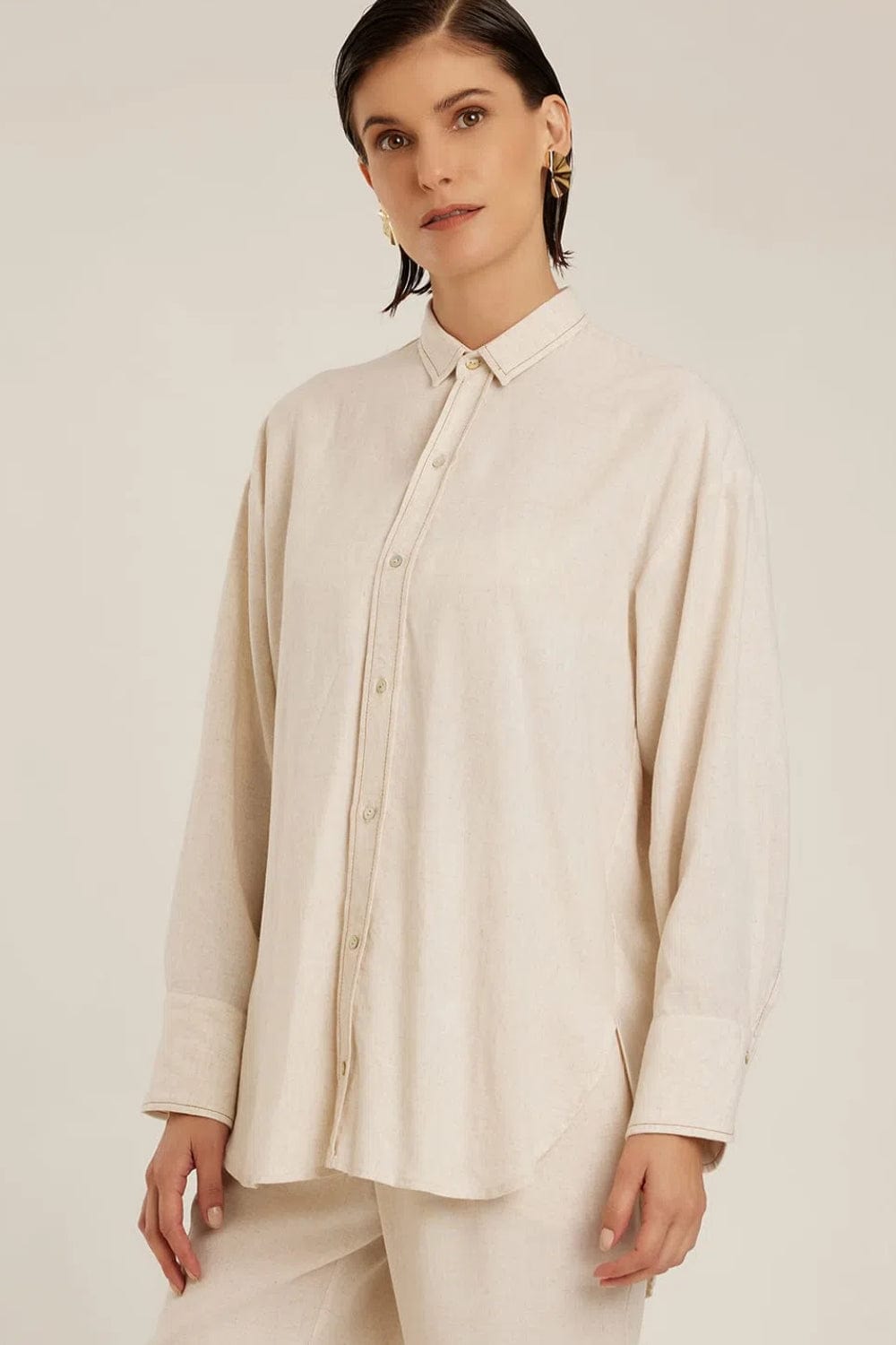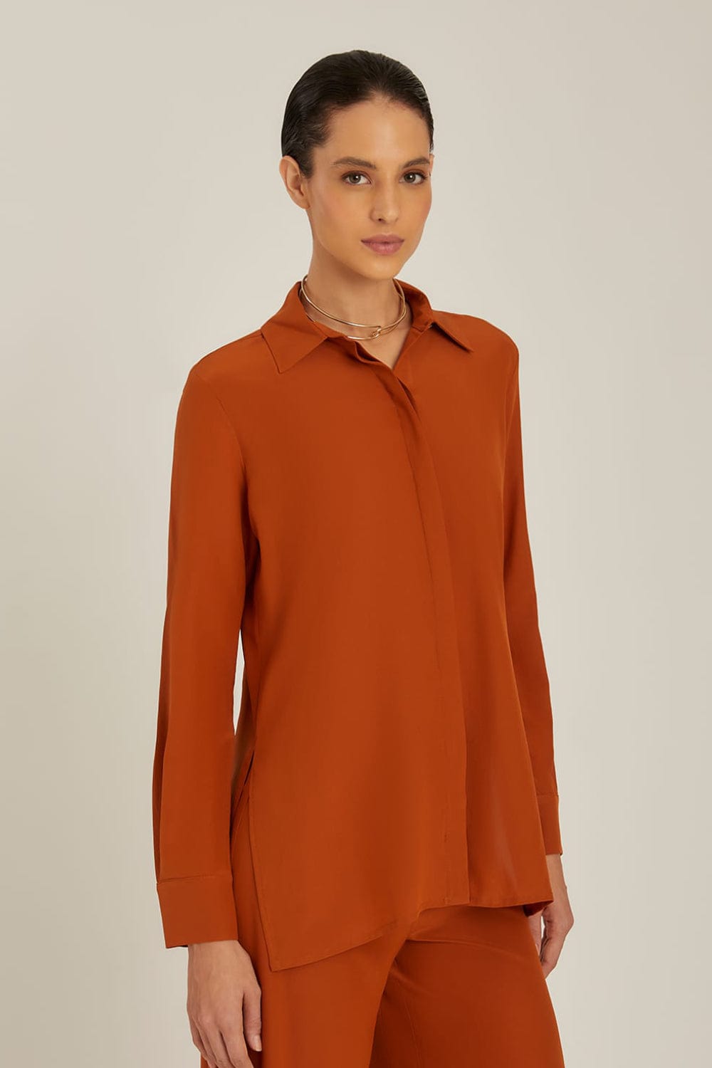 Lenny Niemeyer - Camisa Manga Longa Fendas Laterais Seda Avelã