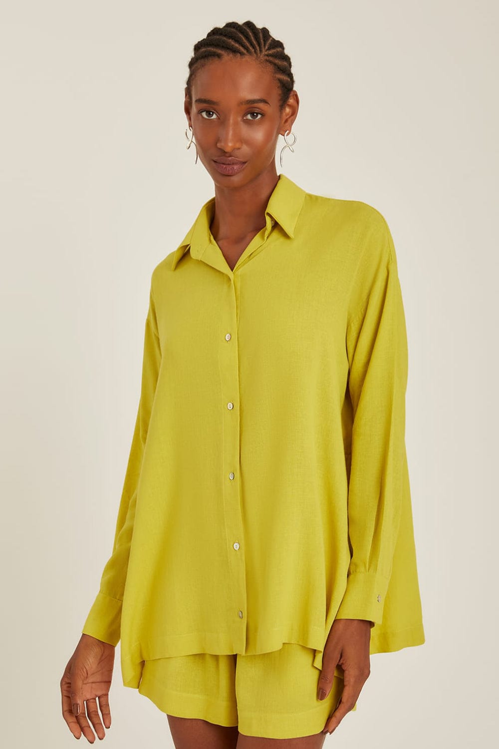 Lenny Niemeyer - Camisa Viscolinho Manga Longa Verde