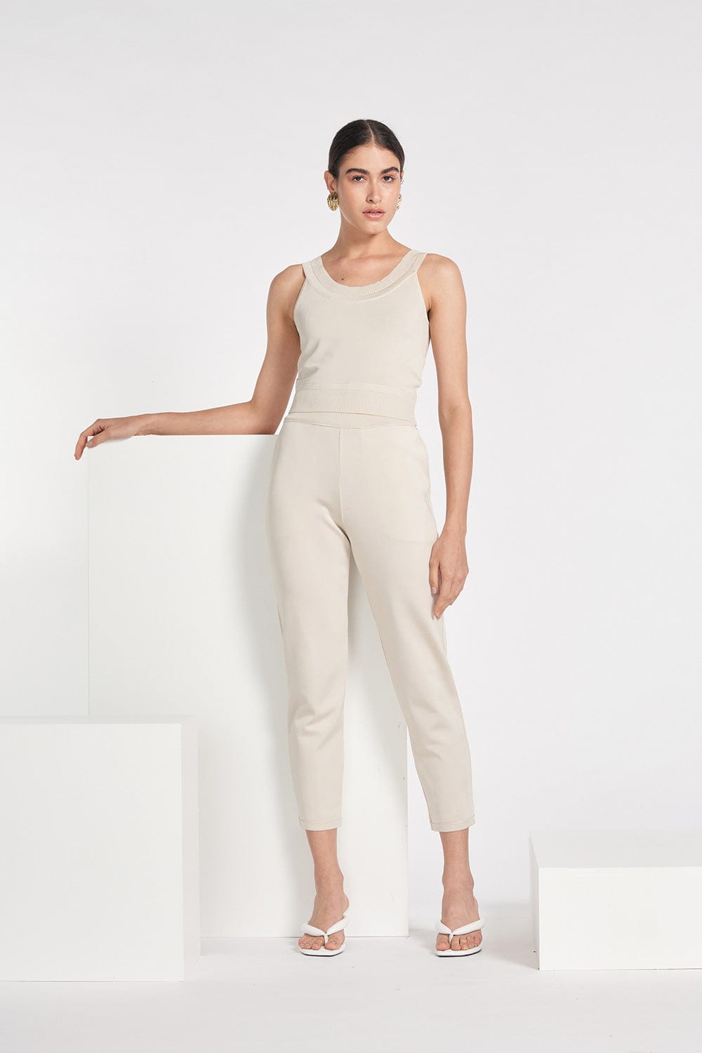 Viviane Furrier - Blusa Cropped Tricot Decote V Sisal