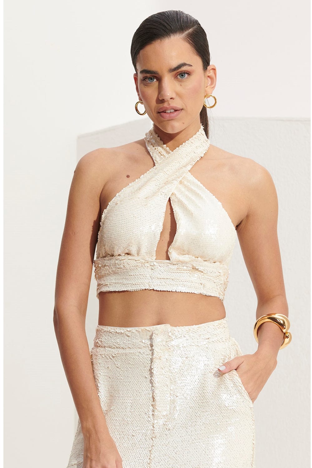 L'Cecci - Top Frente Única em Paetês Off White