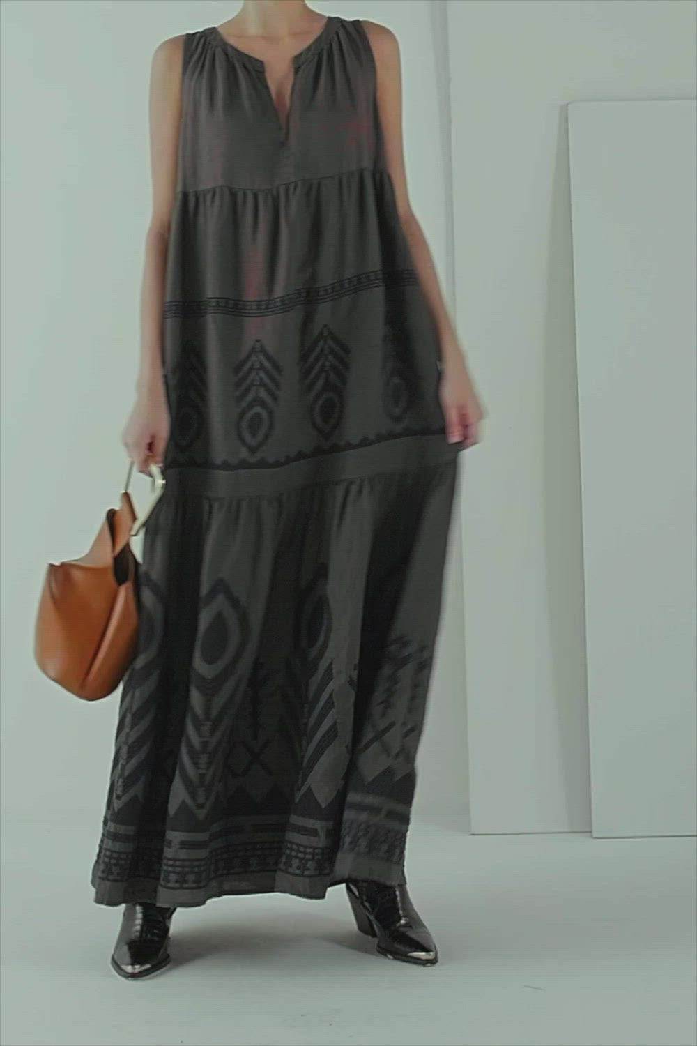 Greek Archaic Kori - Vestido Longo sem Manga Linho