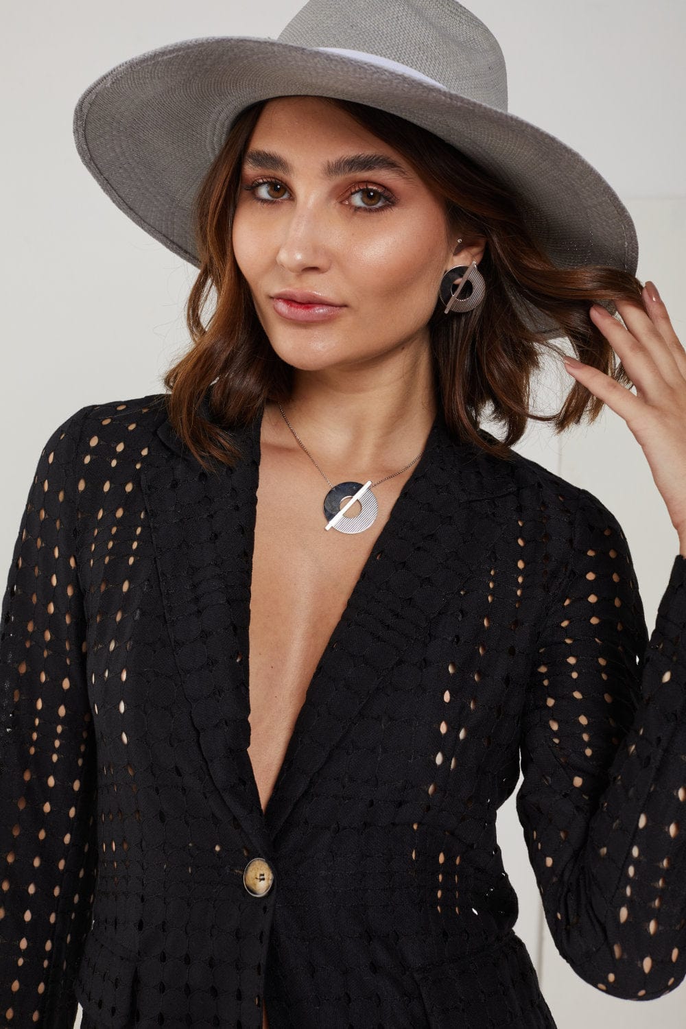 Access - Vestido Curto Manga Longa Renda em Algodão Preto