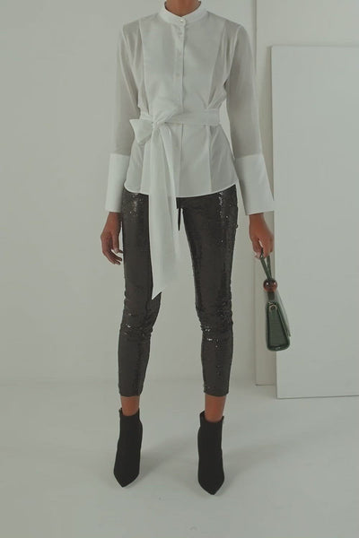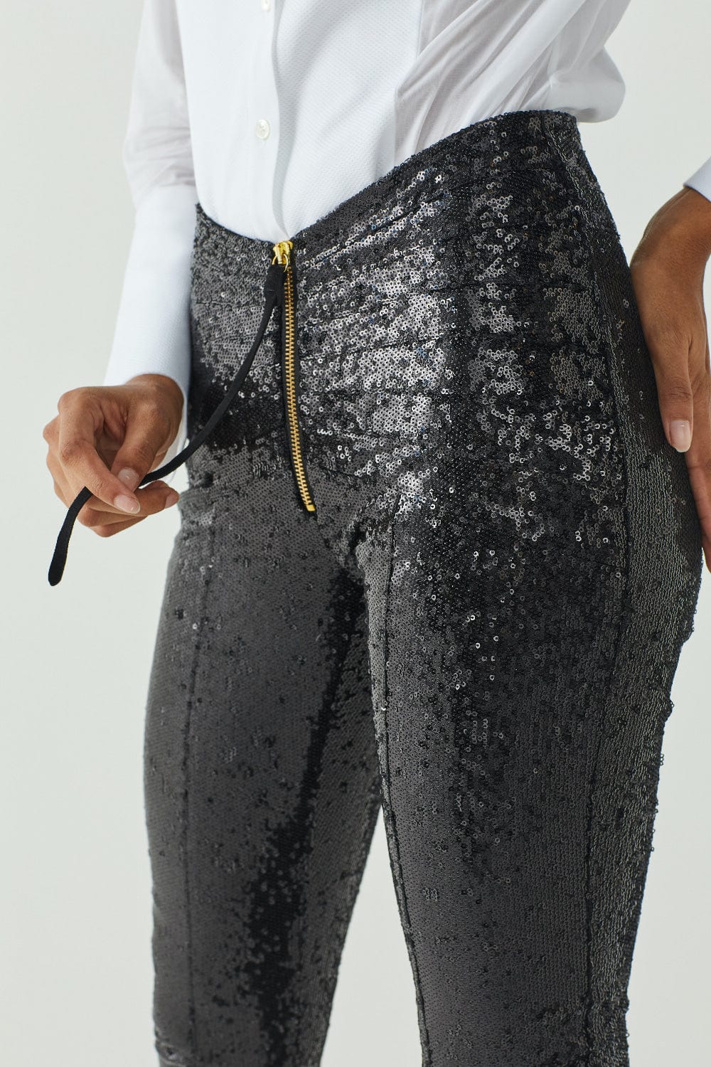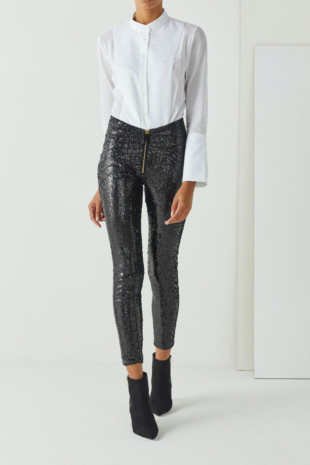Nineminutes - Calça Skinny Paetês com Fecho Frontal