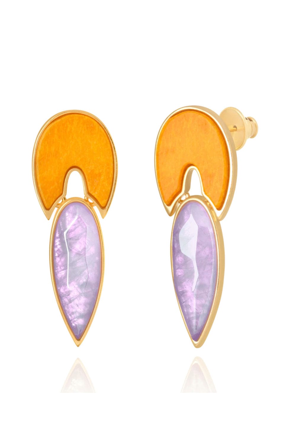 Aimer - Brinco Flor de Lótus Feldspato Amarelo e Quartzo Rosa Banhado a Ouro