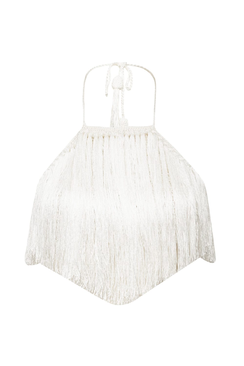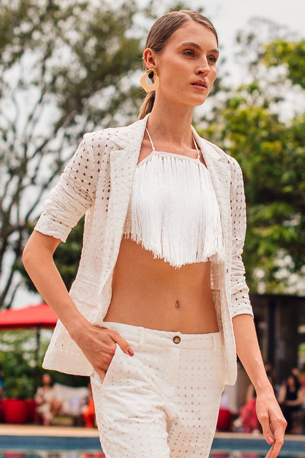 Andrea Almeida - Blusa Cropped Franjas Crochet Carol Branco