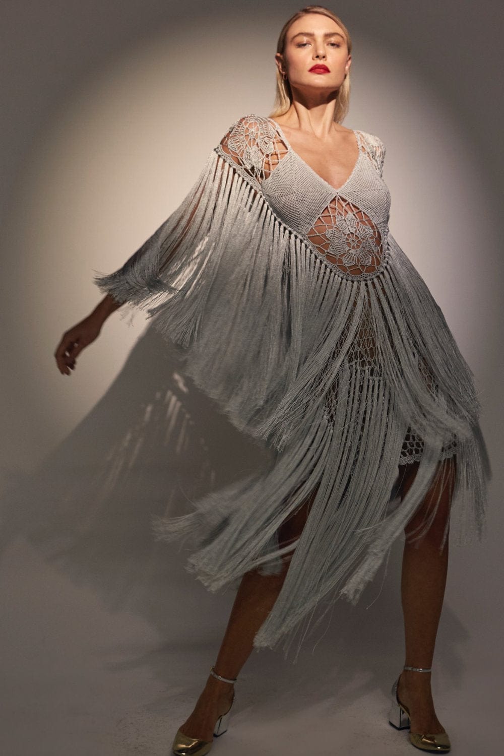 Andréa Almeida - Vestido Midi Franjas Crochet Vanessa Crochet Preto