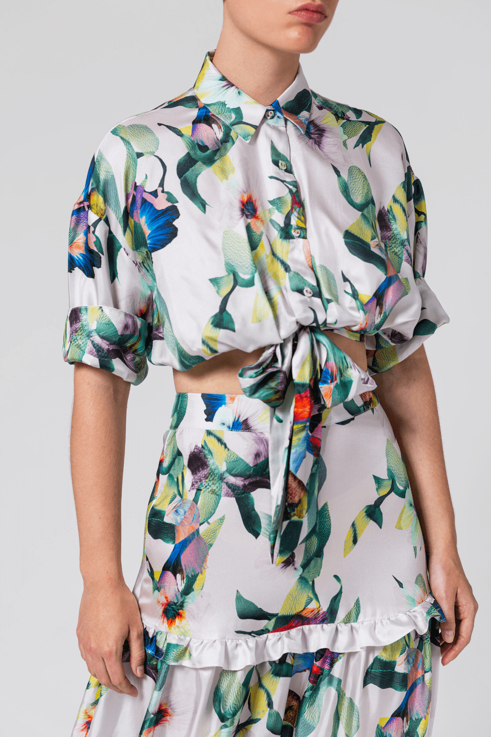 ANT - Camisa Cropped Manga 3/4 em Seda