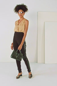 Lecrokí - Calça Legging com Detalhe em Vinil