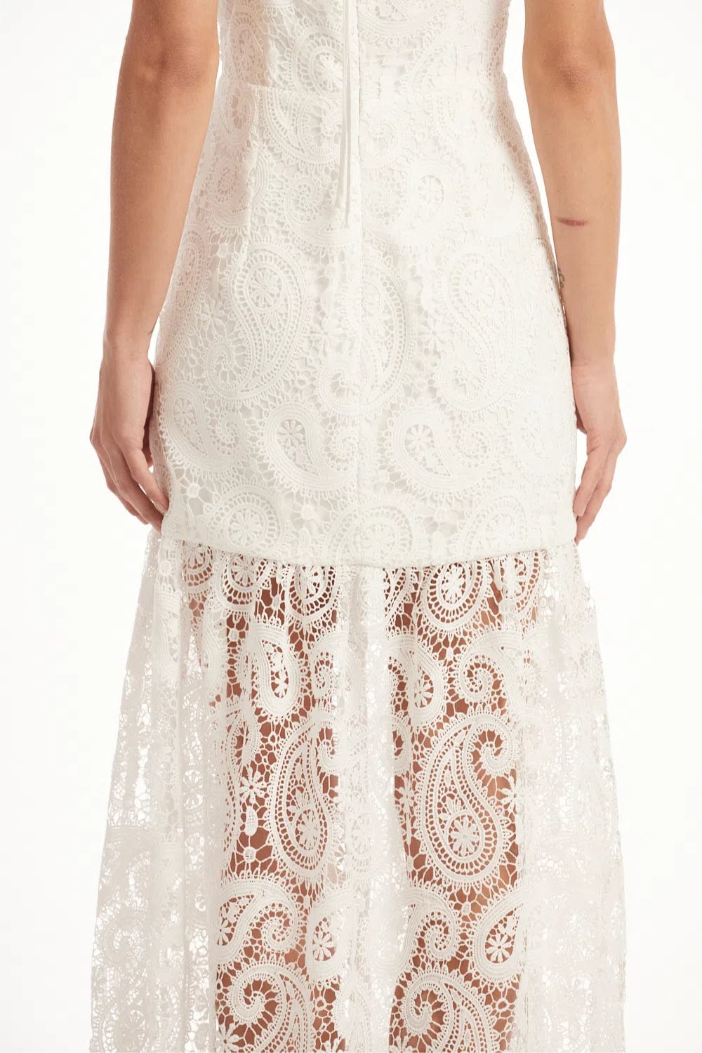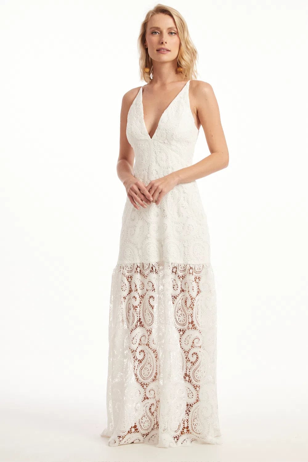Canal - Vestido Longo Alça Renda Guipure Off White