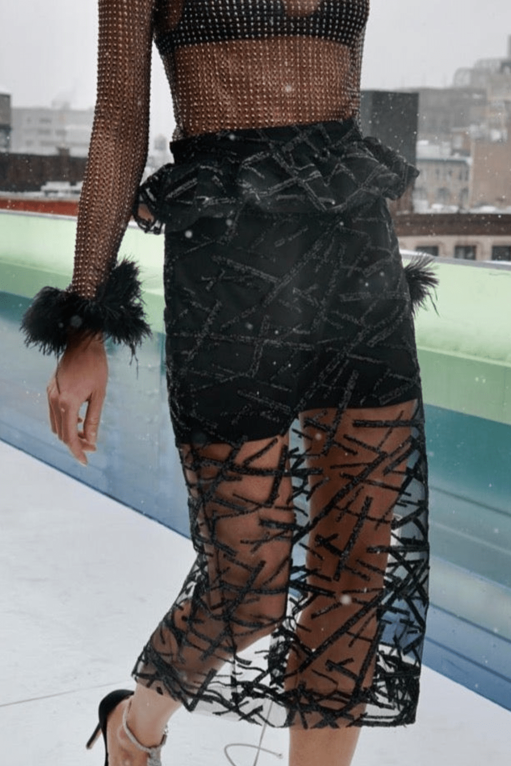 Access - Vestido Curto Manga Longa Renda em Algodão Preto
