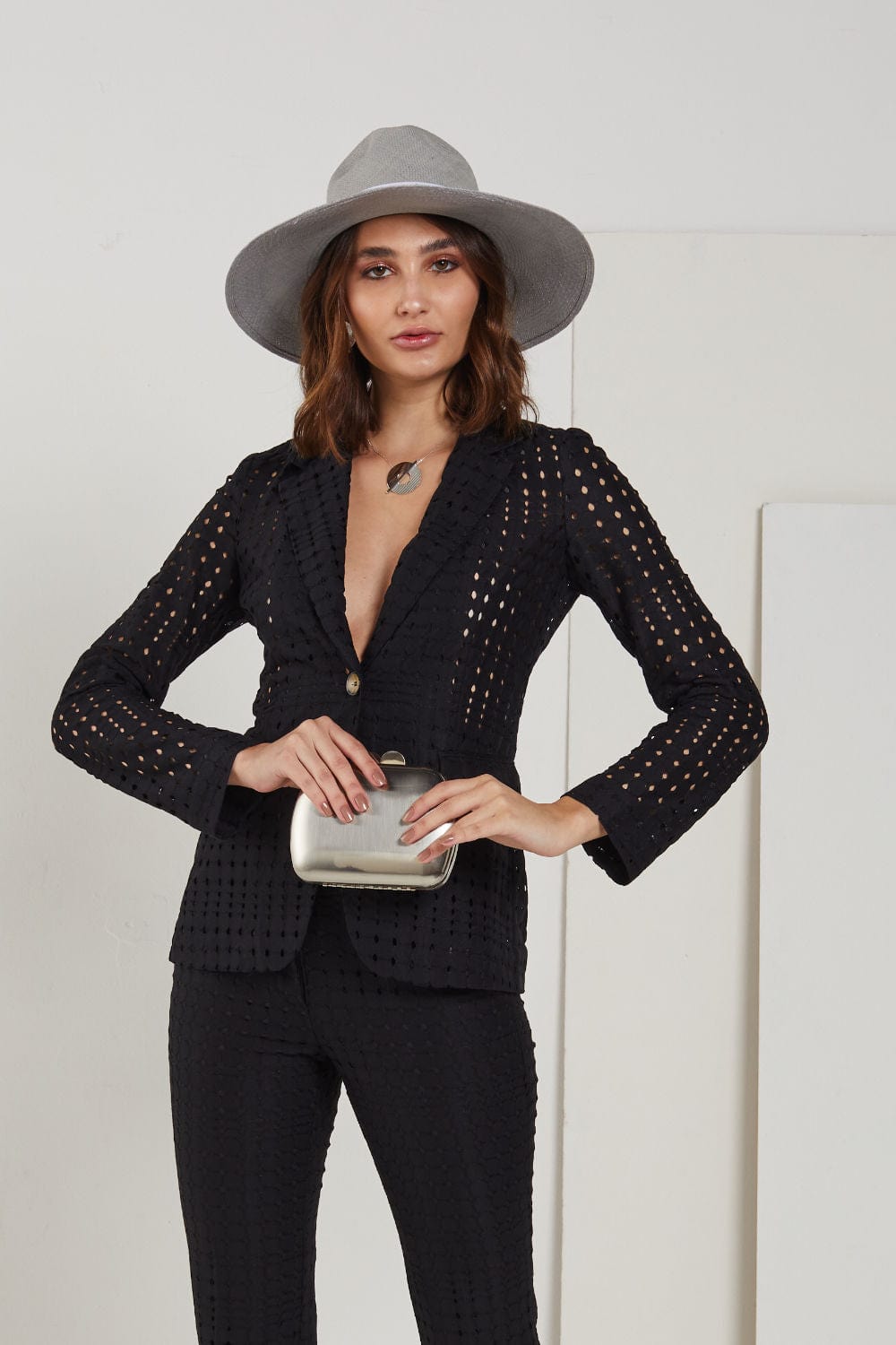 Access - Vestido Curto Manga Longa Renda em Algodão Preto