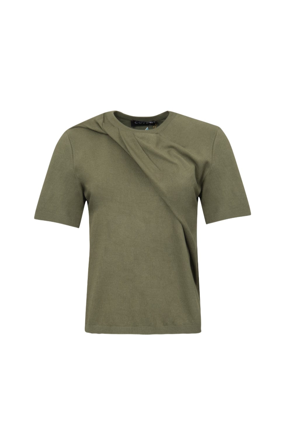 Coven - Blusa Manga Curta Tricot Torcido Verde Militar