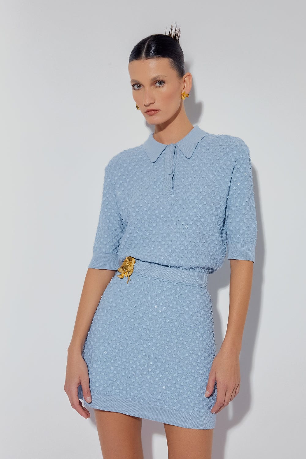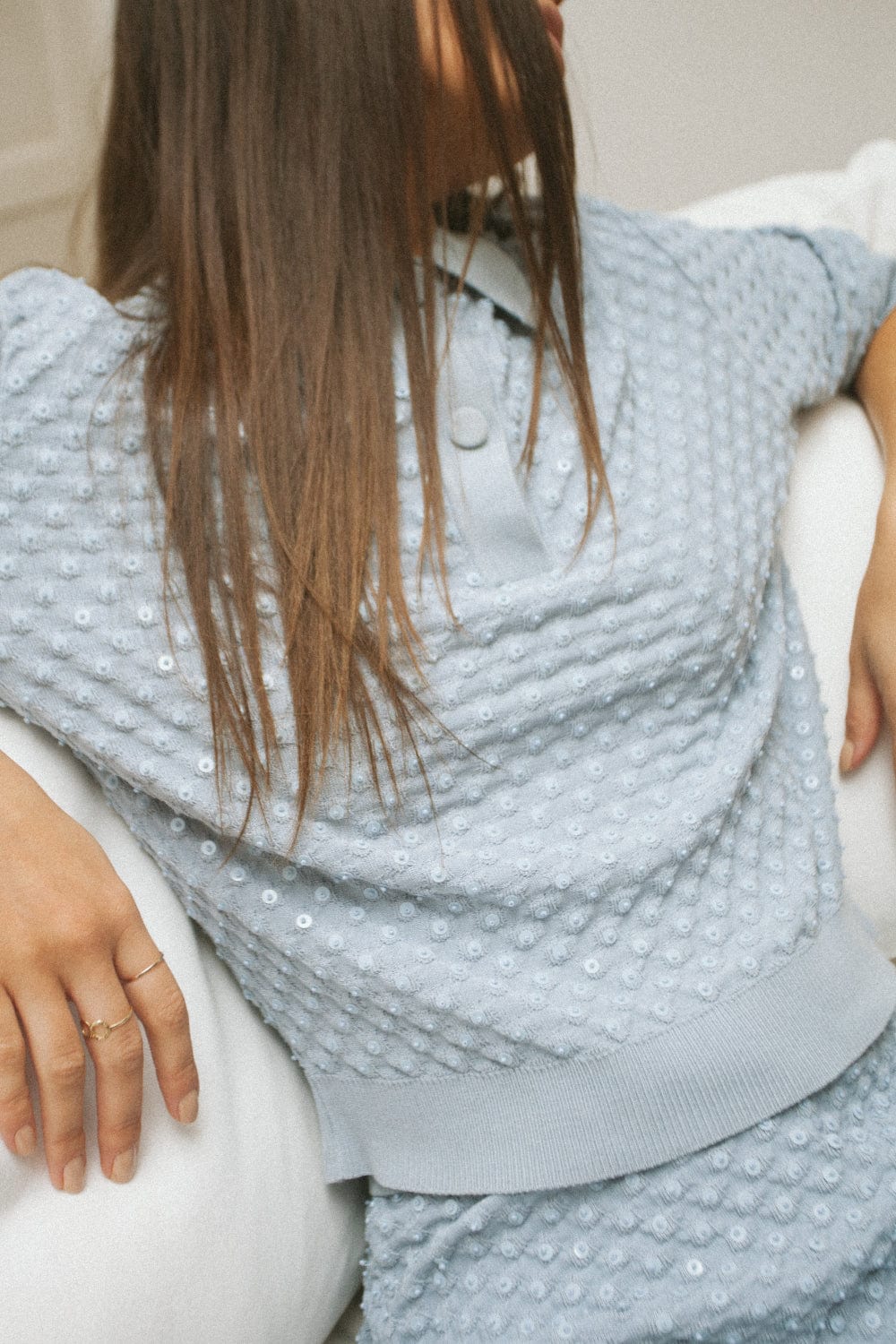 Blusa polo com modelagem soltinha e comprimento na cintura, feita em tricô texturizado.