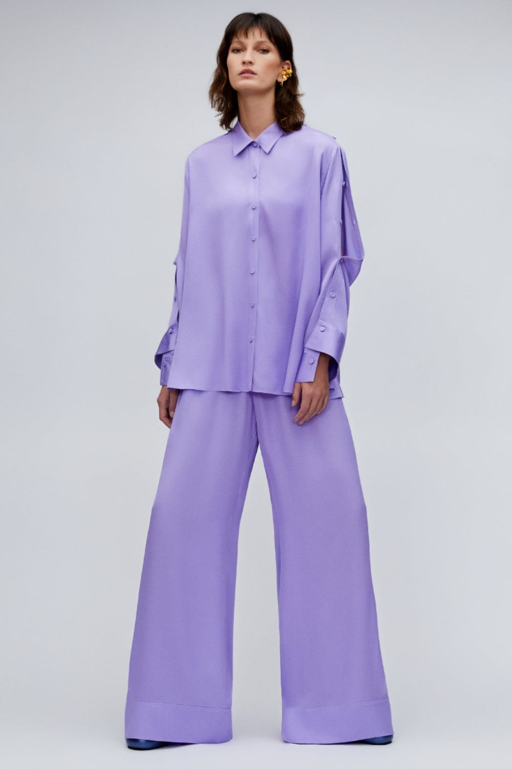 Detalhe especial para a manga com abertura e fechamento por botões encapados.