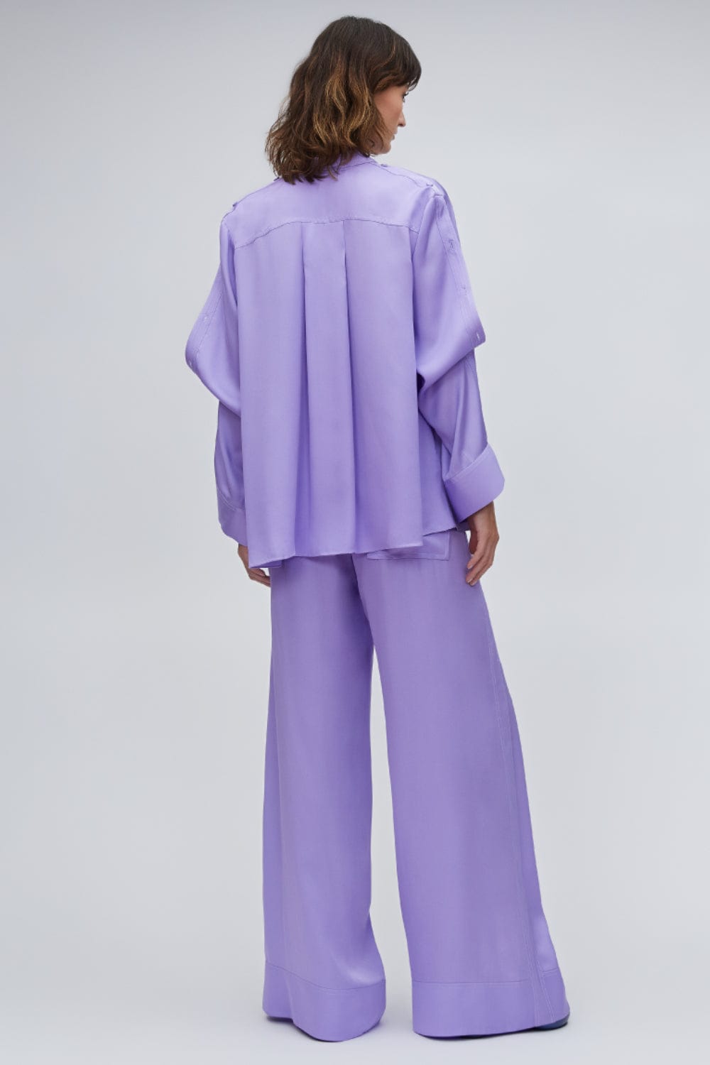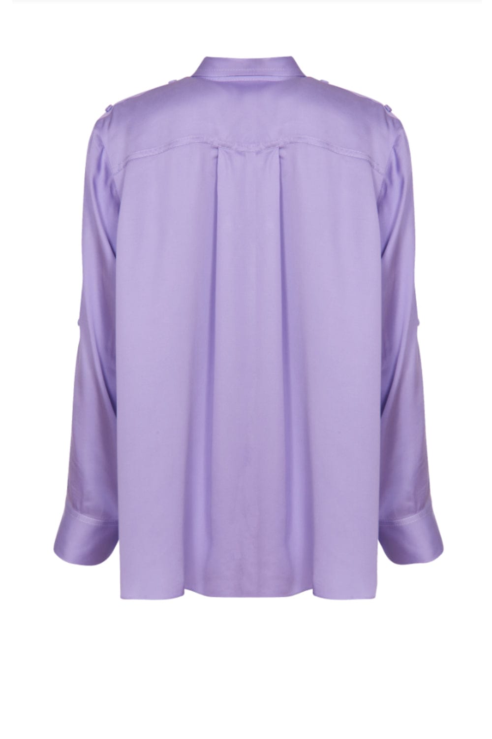 Possui fechamento frontal por botões, prega nas costas e pespontos na cor do tecido.