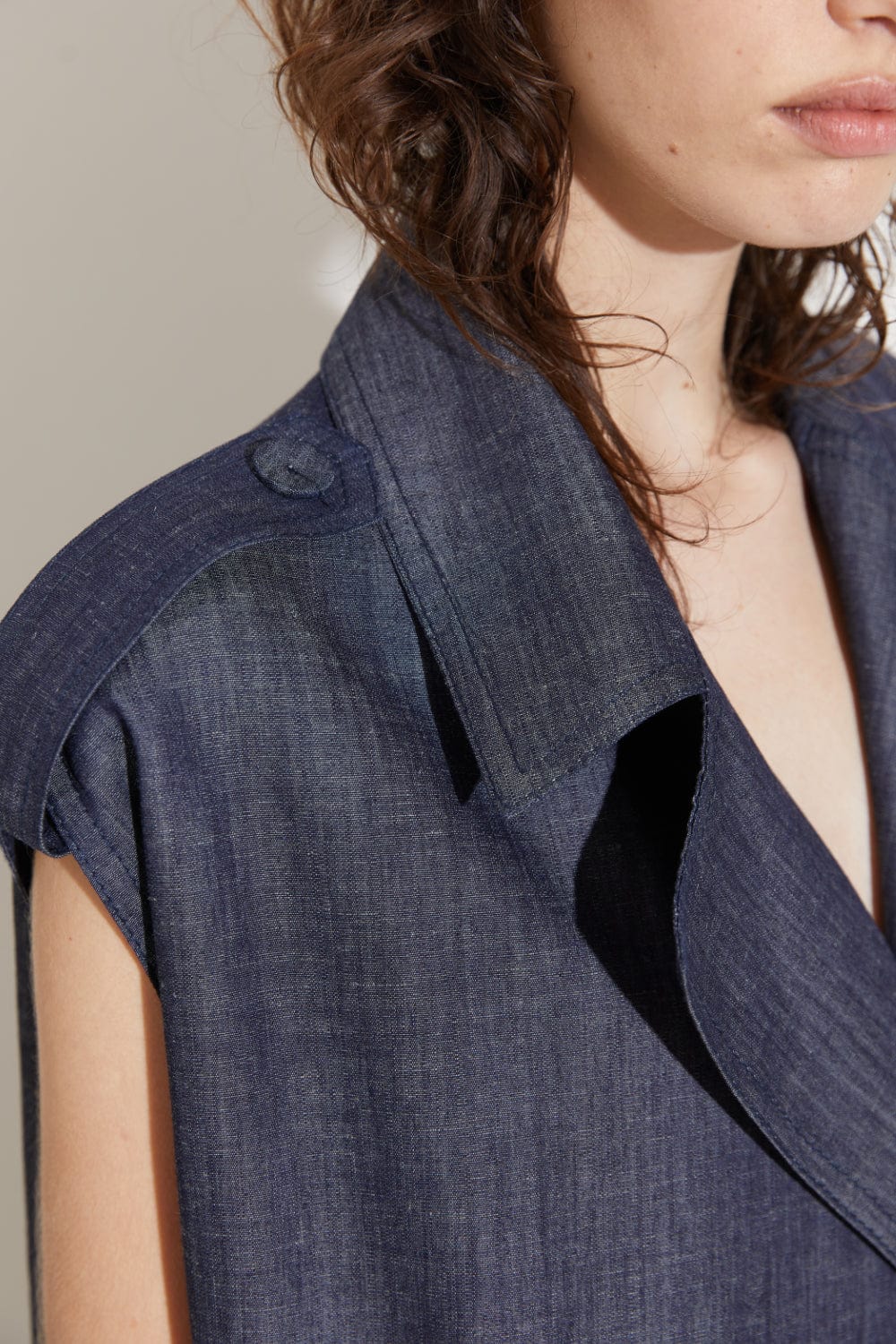 Colete trench no jeans leve