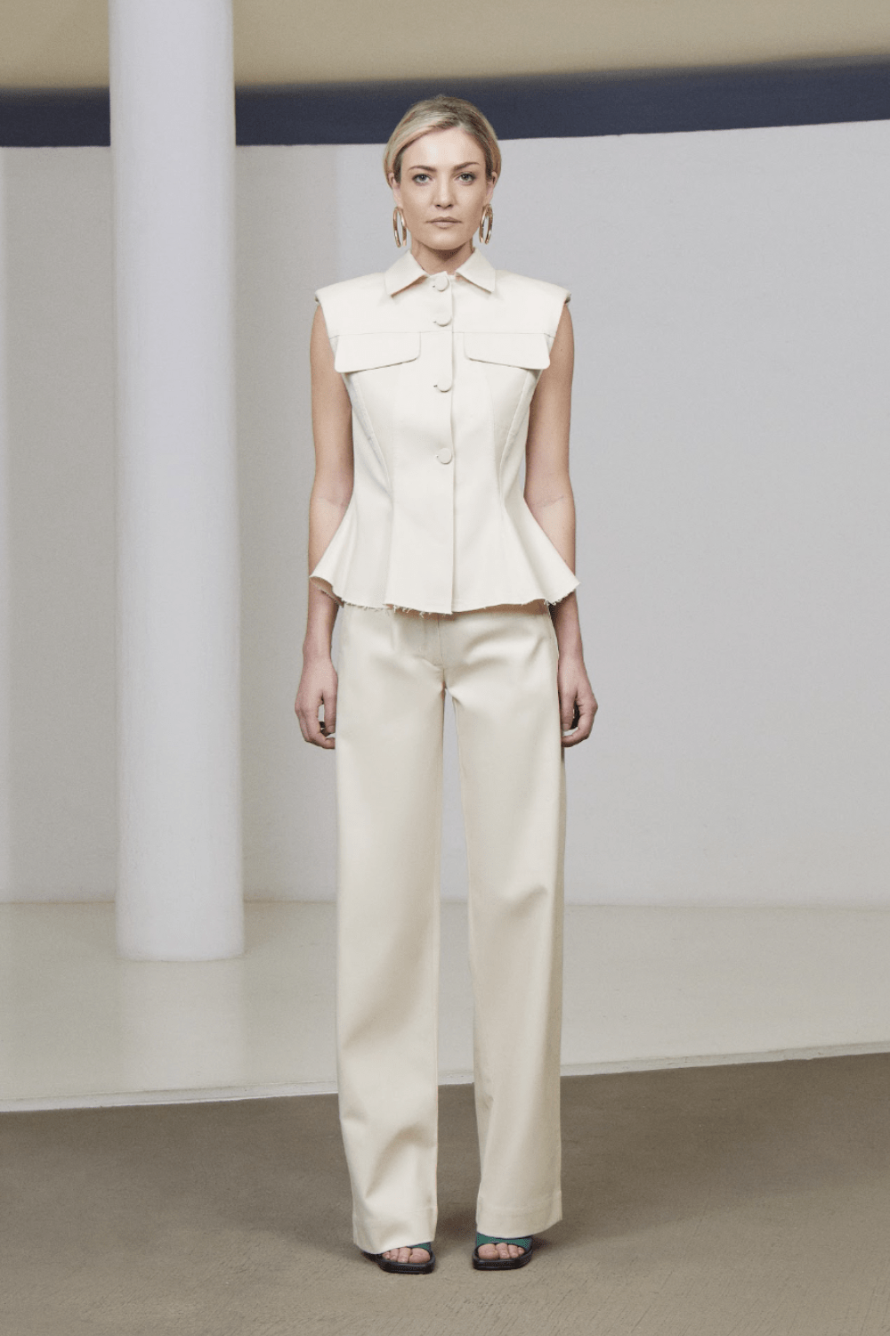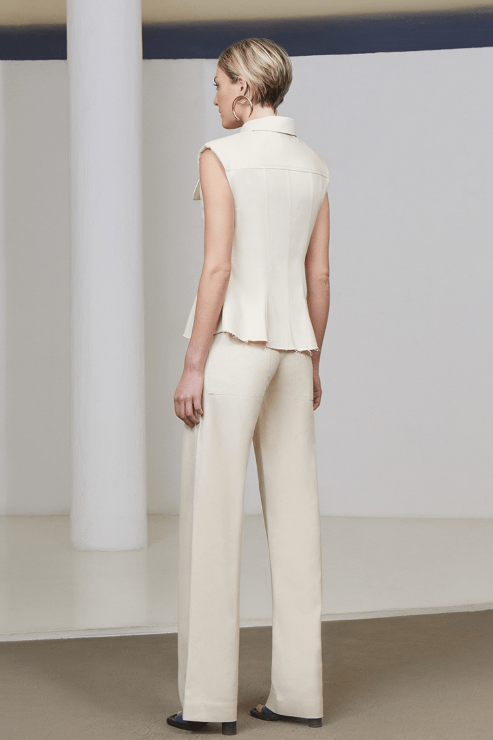 Coven - Blusa sem Manga Sarja e Couro Bege Pluma
