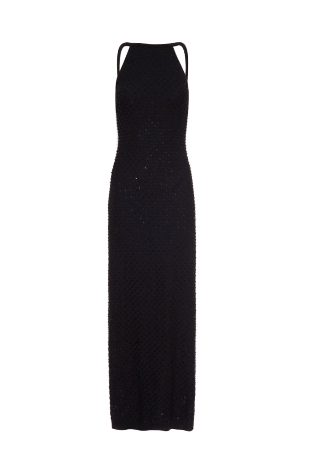 Vestido com modelagem reta, próximo ao corpo e comprimento midi, feito em tricô texturizado.