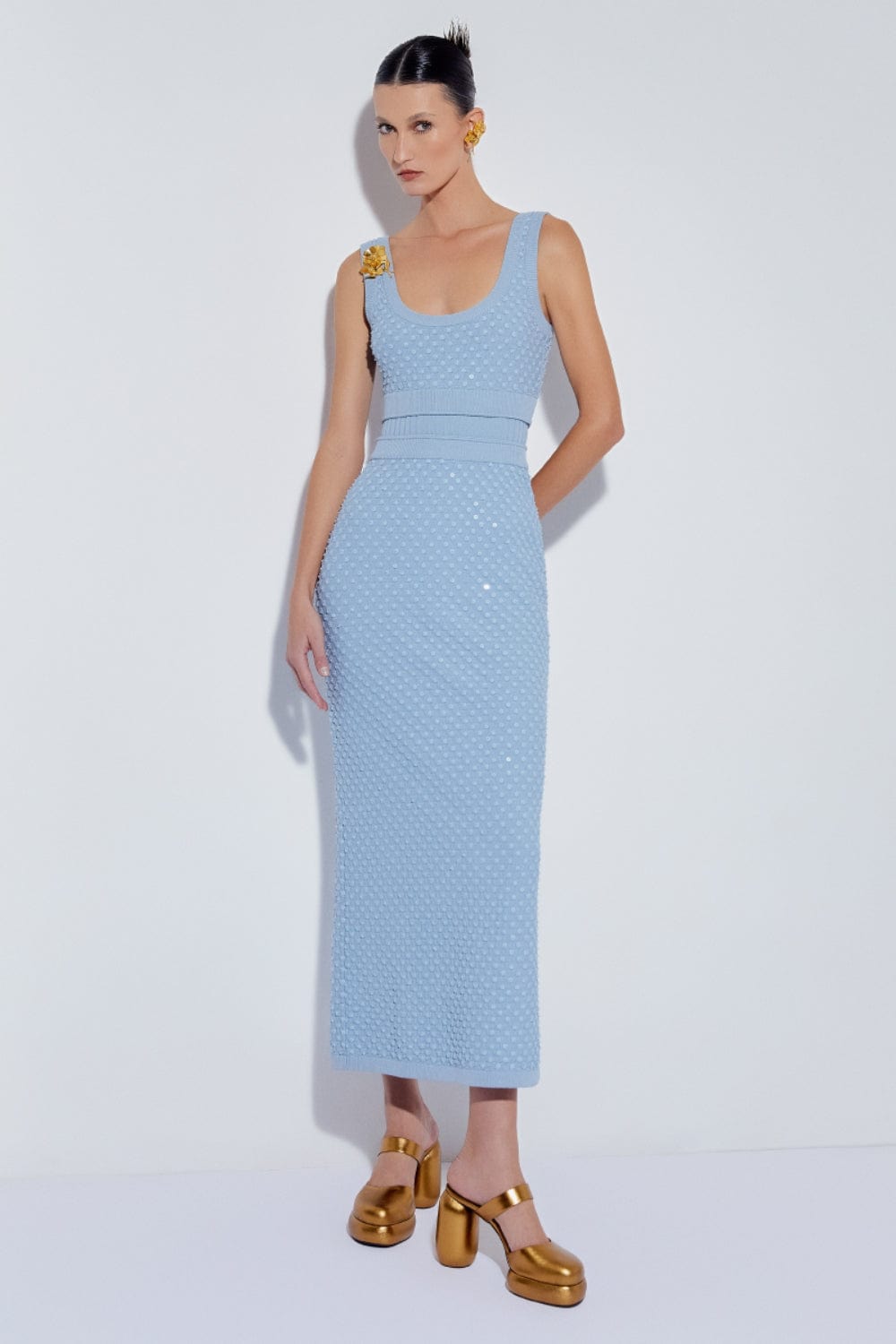 Coven - Vestido Midi Poá Paetês Azul Claro