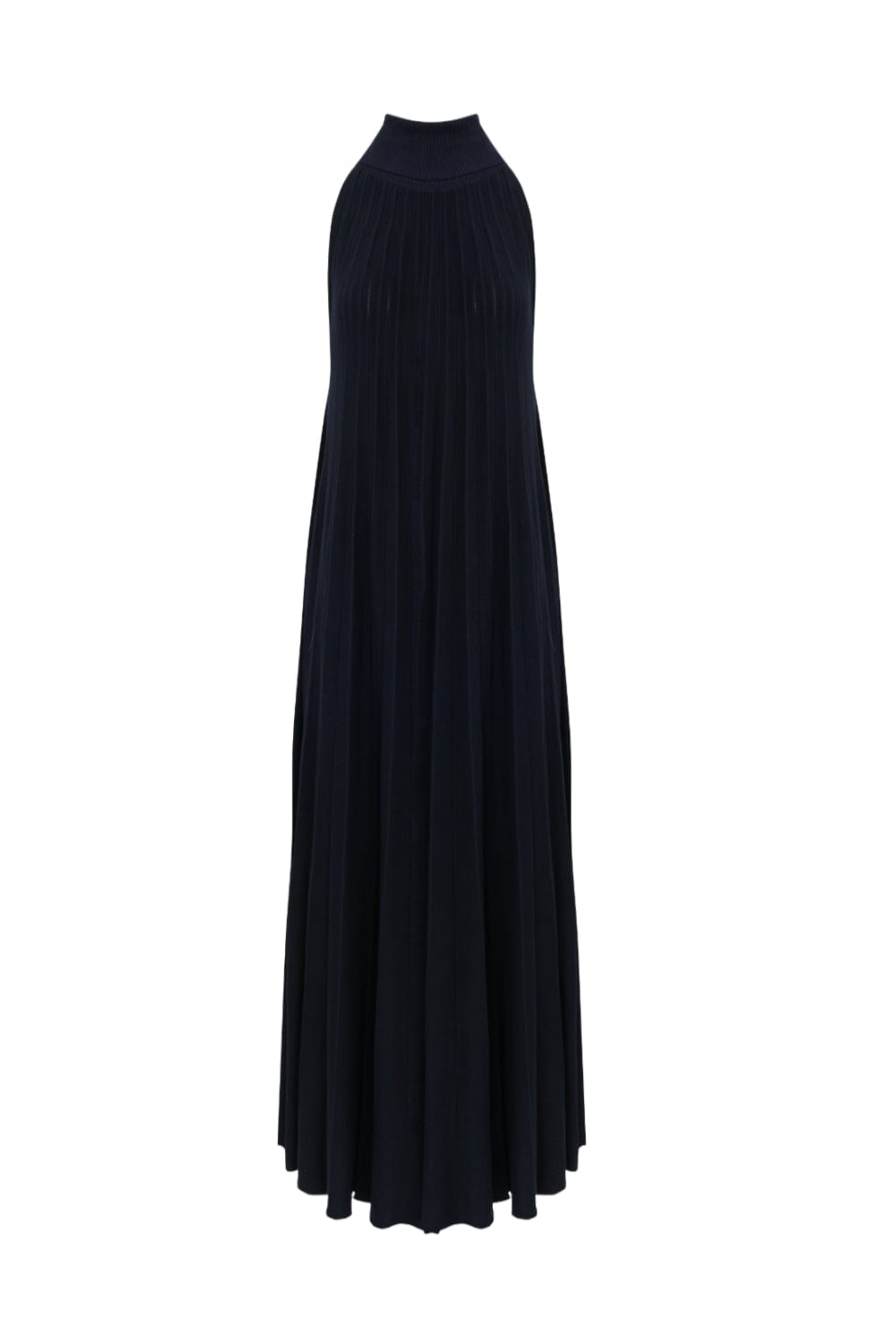 Coven - Vestido Longo Plissado Gola Alta Azul Marinho