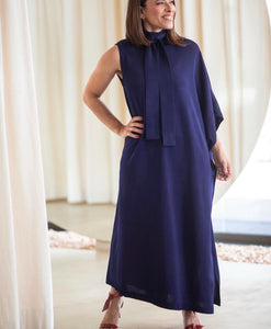Coven - Vestido Midi Assimétrico Gola Alta Preto