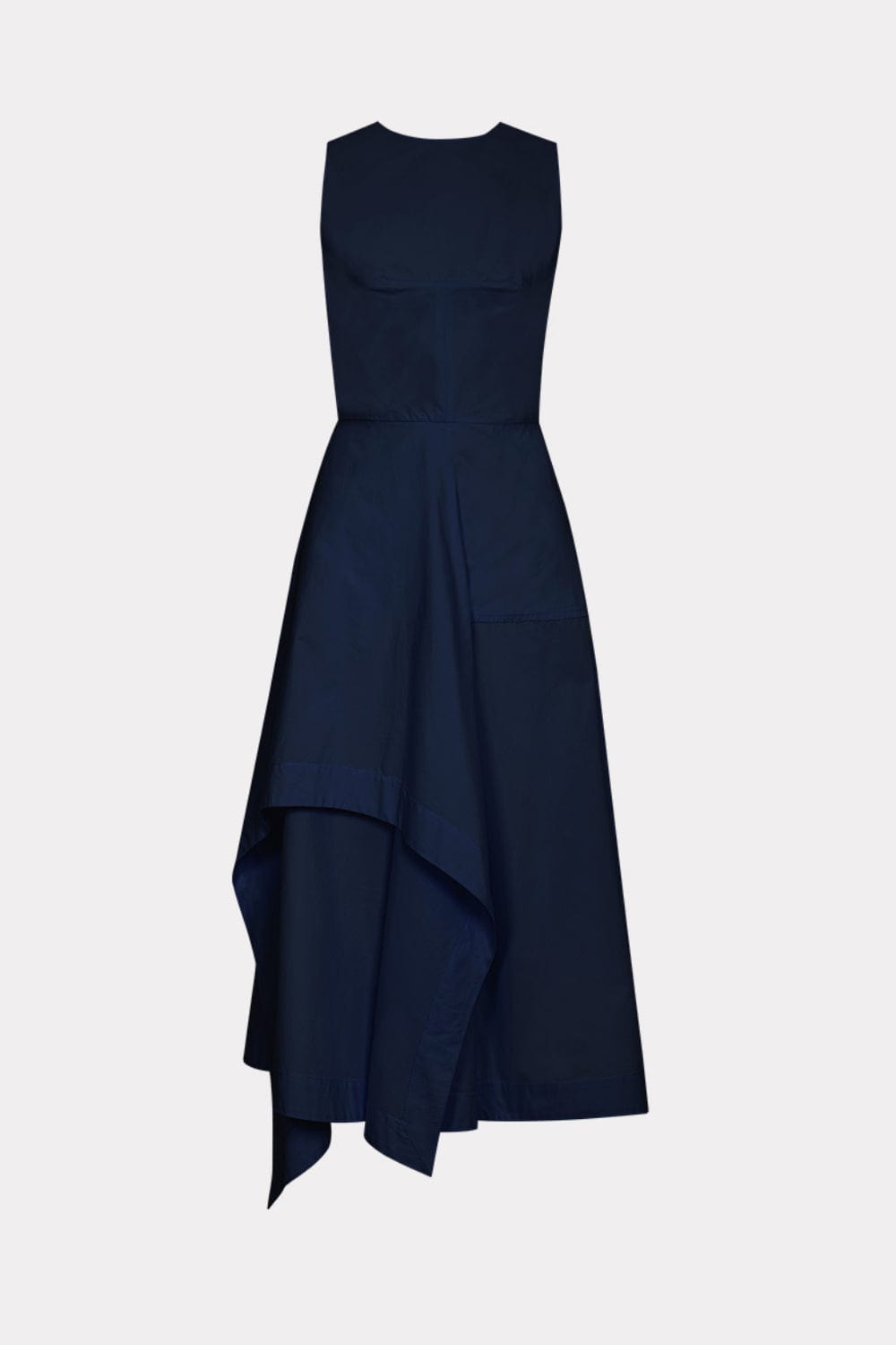 Coven - Vestido Midi Sem Manga Tricoline Azul Marinho