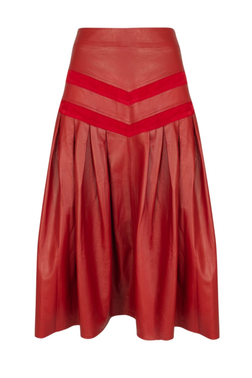 Di Capra - Saia Midi Couro Recortes Mara Vermelho