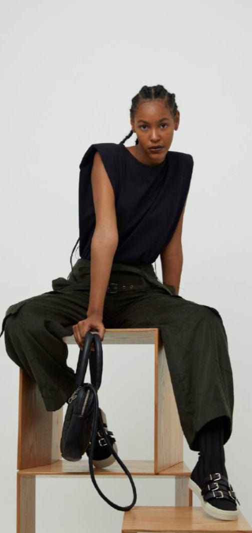 Glória Coelho - Blusa sem Manga T-shirt Ombreira Muscle Tee Preto