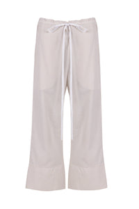Calça com listras e amarração é feita em algodão leve e confortável.
