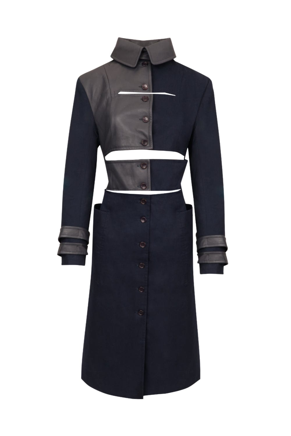 Glória Coelho - Sobretudo 7/8 de Lã e Couro Marinho