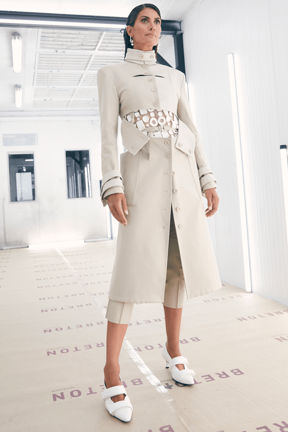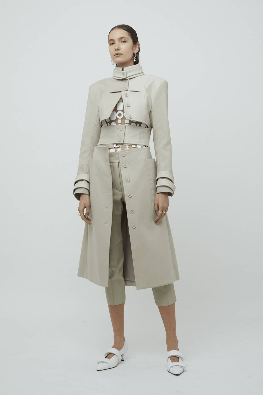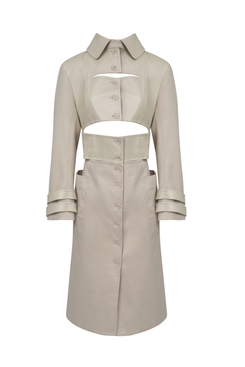 Glória Coelho - Sobretudo 7/8 Algodão com Couro Gelo