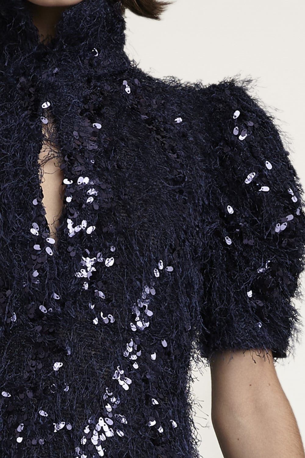Glória Coelho - Vestido Midi em Paetês Island Azul Marinho