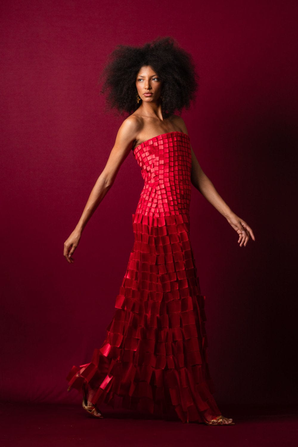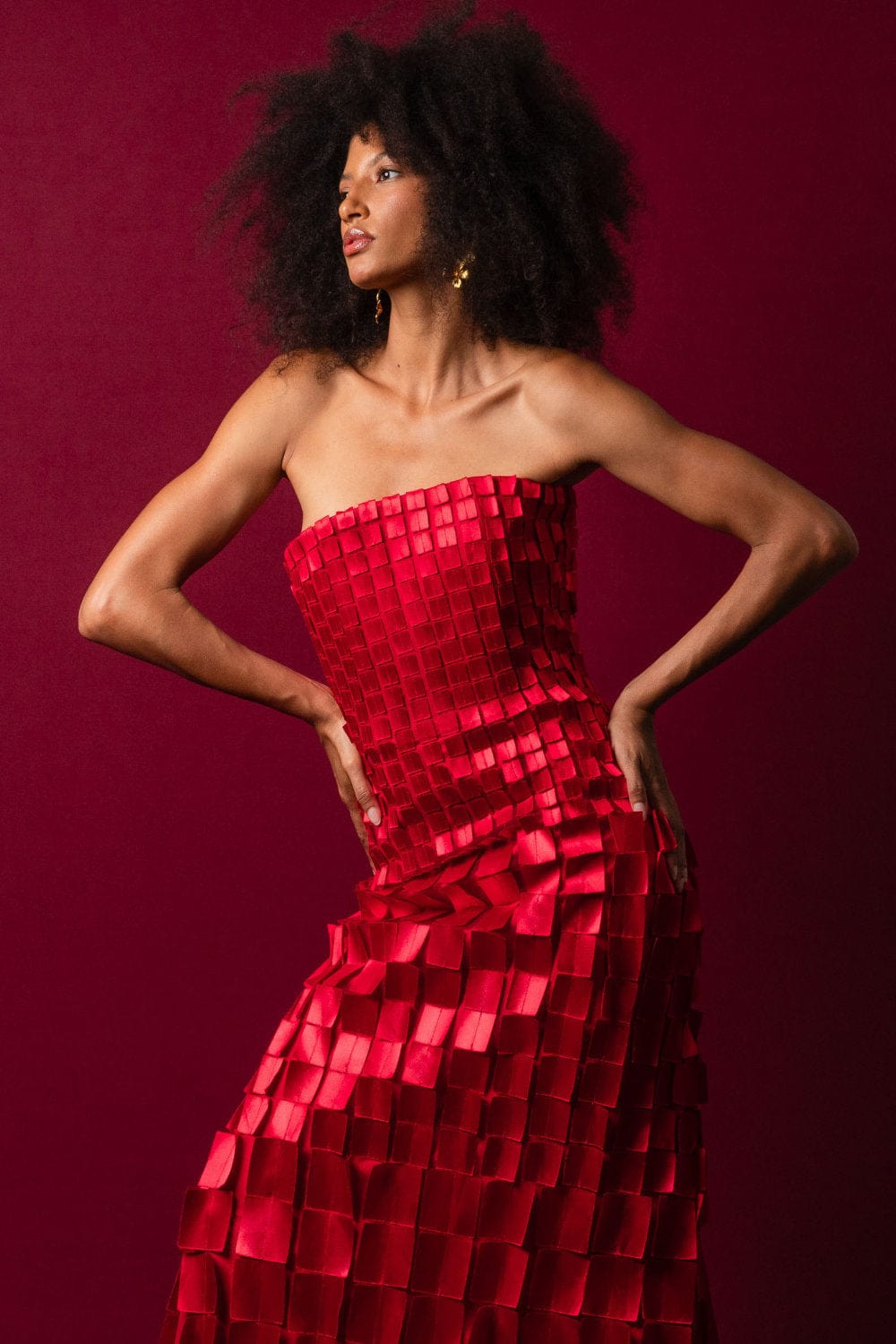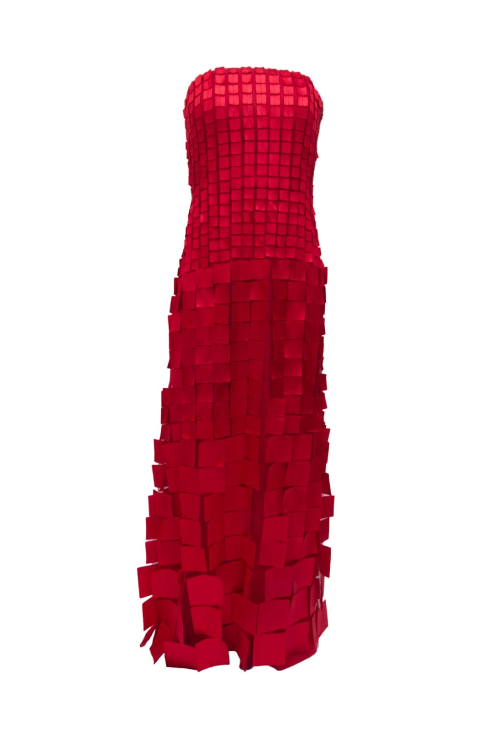 Glória Coelho - Vestido Longo sem Alça com Aplicações em Quadrado Vermelho