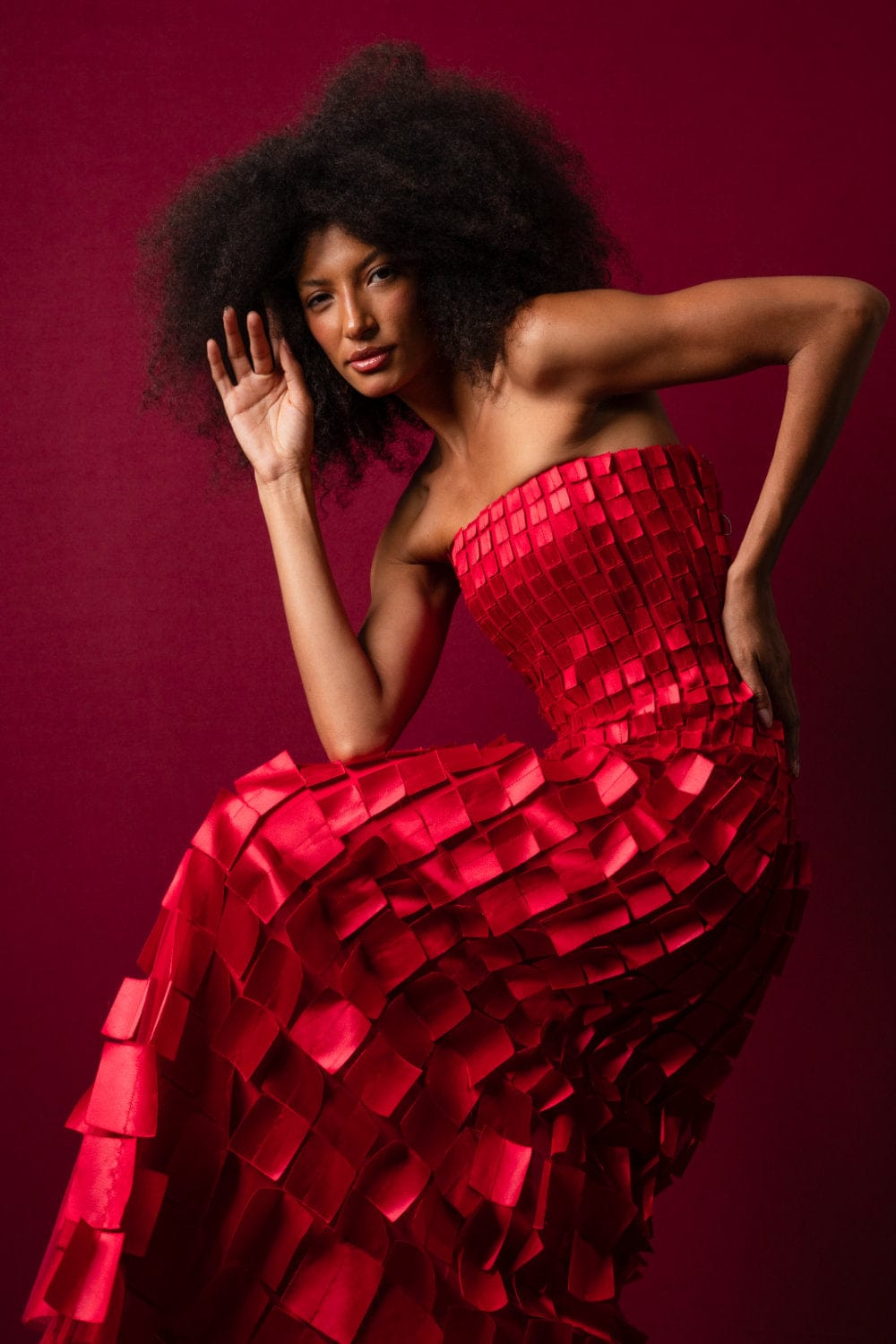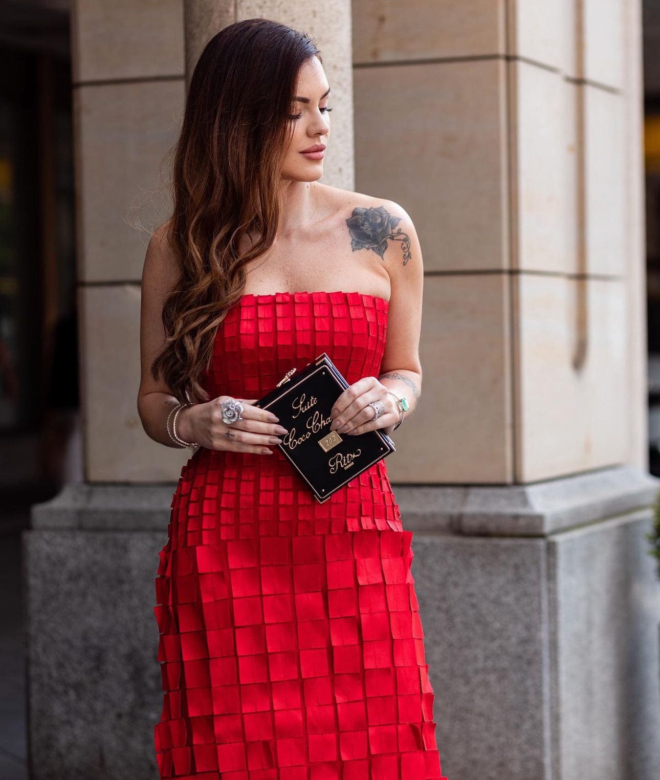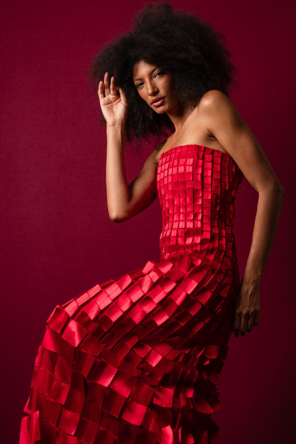 Glória Coelho - Vestido Longo sem Alça com Aplicações em Quadrado Vermelho