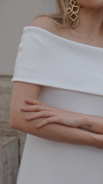 Glória Coelho - Vestido Midi Ombro a Ombro Malha V2188 Off White
