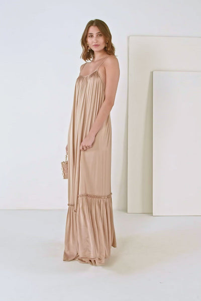 Greek Archaic Kori - Vestido Longo de Alça Fina Flúido Bege