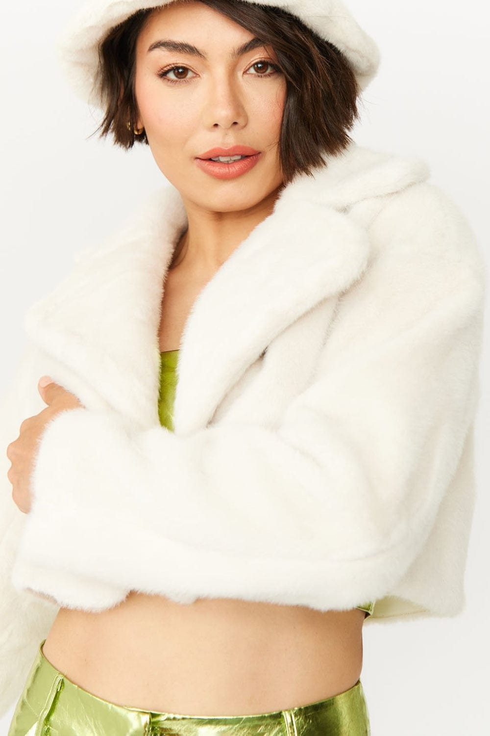 Jayley - Casaco Cropped Pêlo Sintético Off White