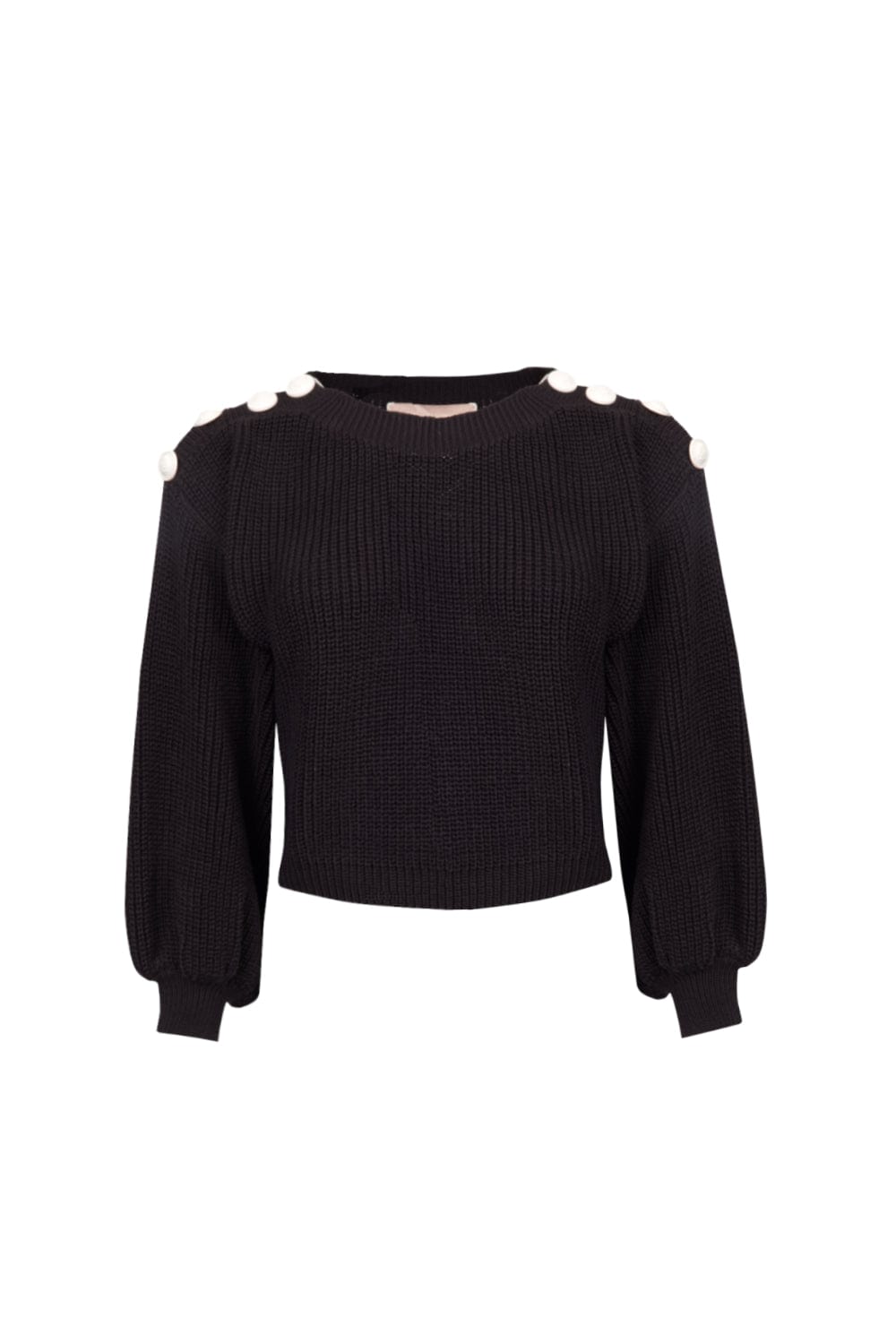 Juliana Sanmartin - Blusa Manga Longa Tricot Botões Brancos Preto