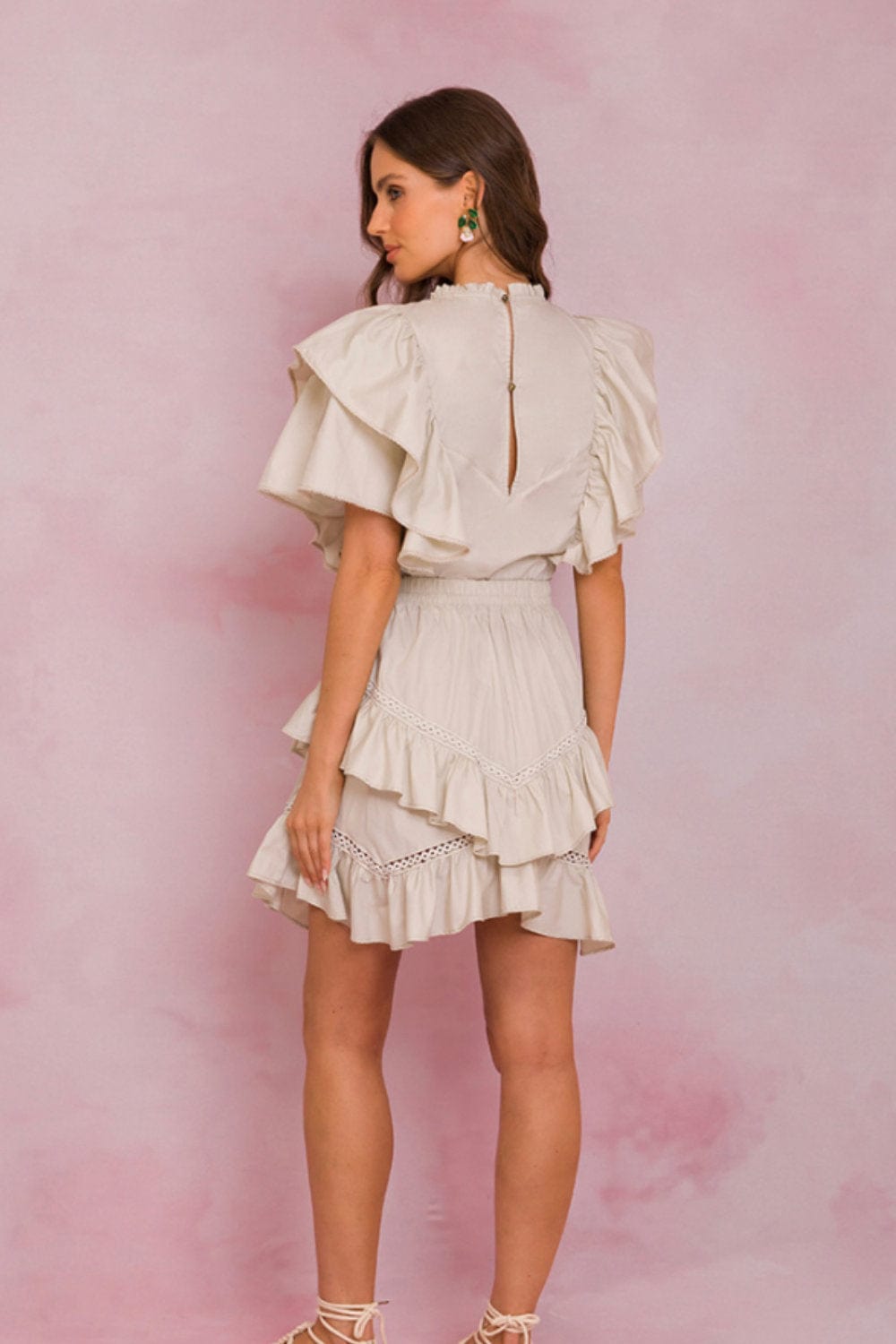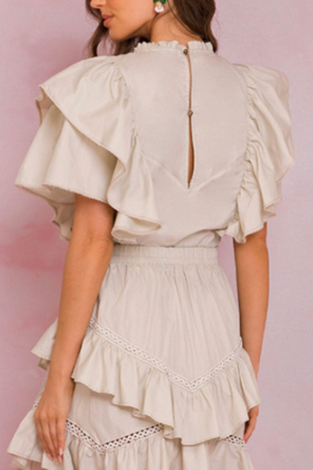 Lalibela - Blusa Manga Curta com Babados Bege