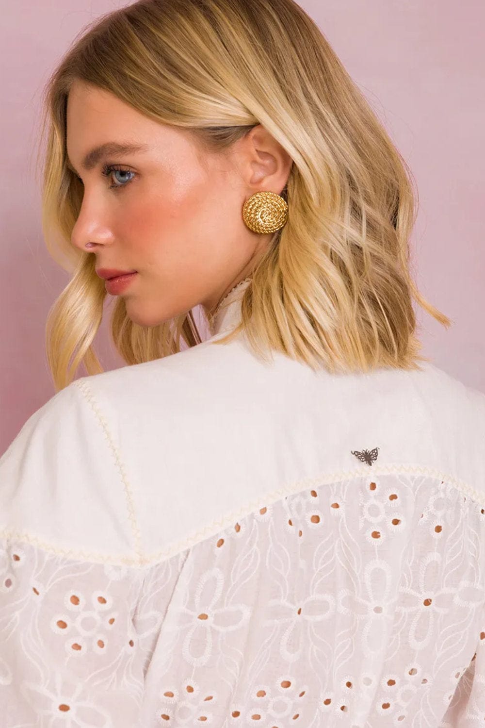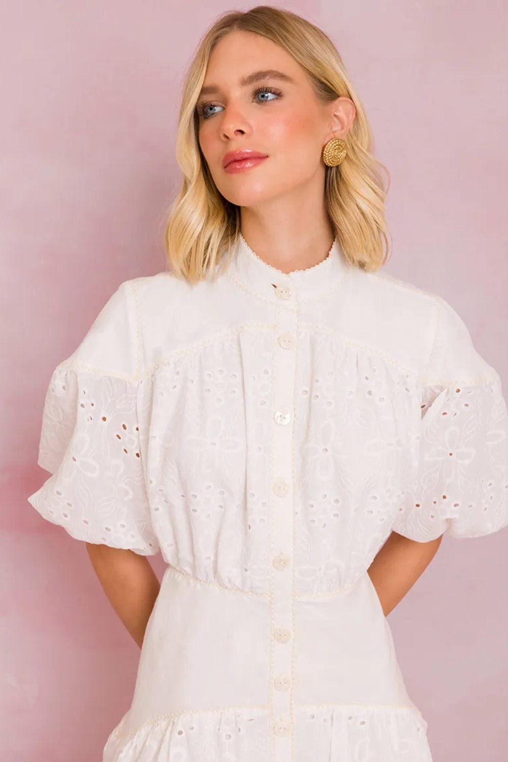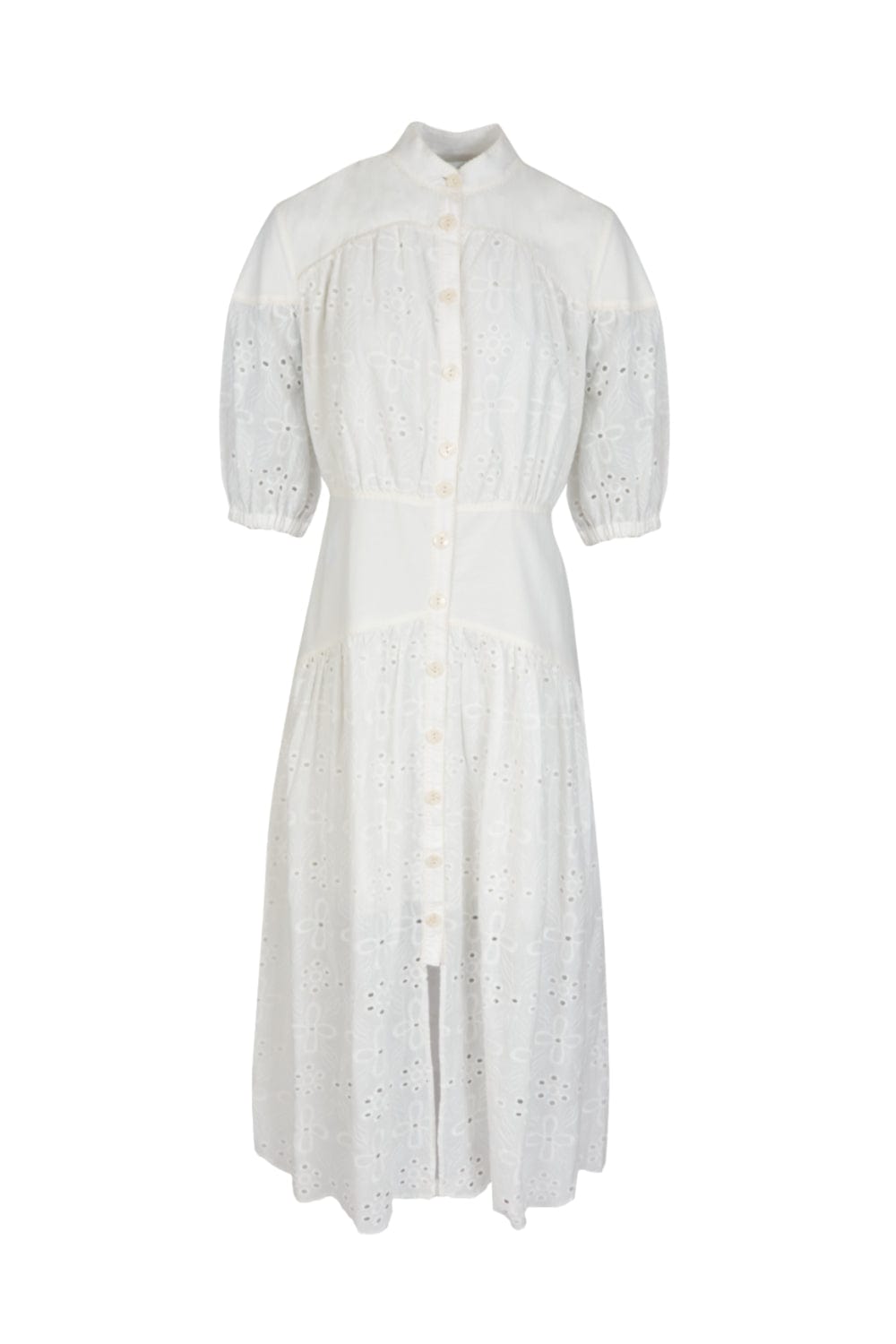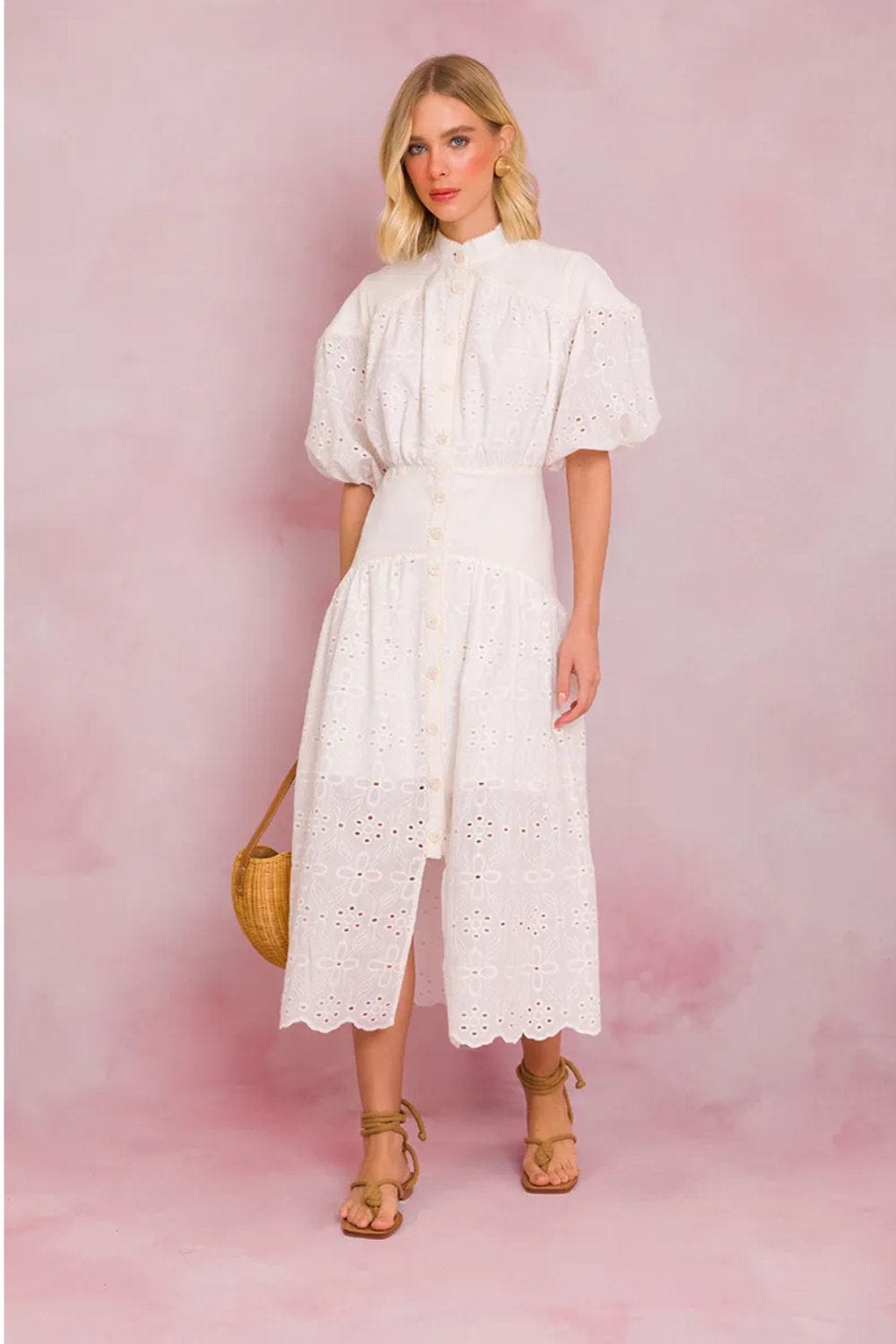 Vestido chemise maxi midi em laise 100% algodão na cor off white.