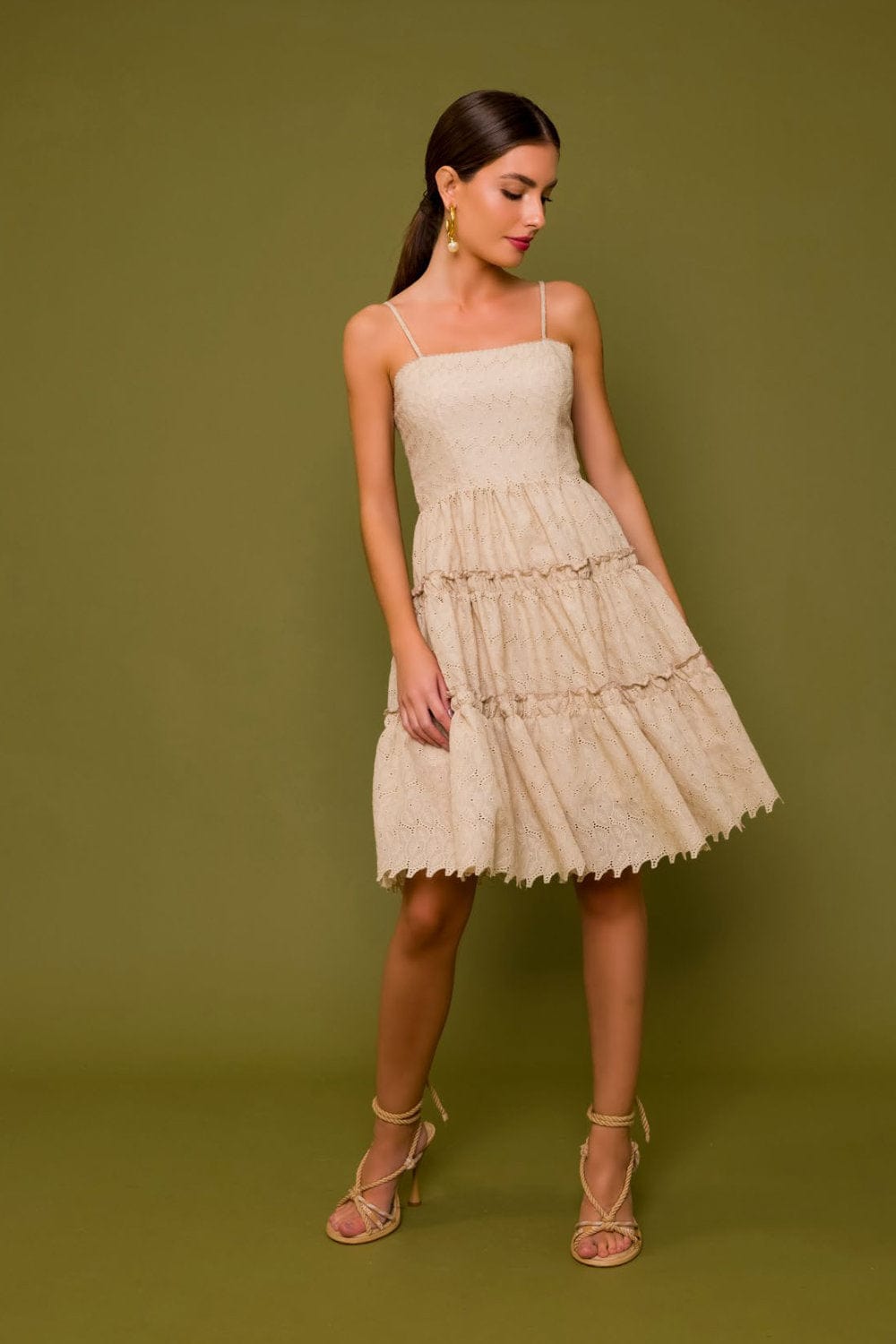Lalibela - Vestido Curto Alça Fina Saint Dévote Bege