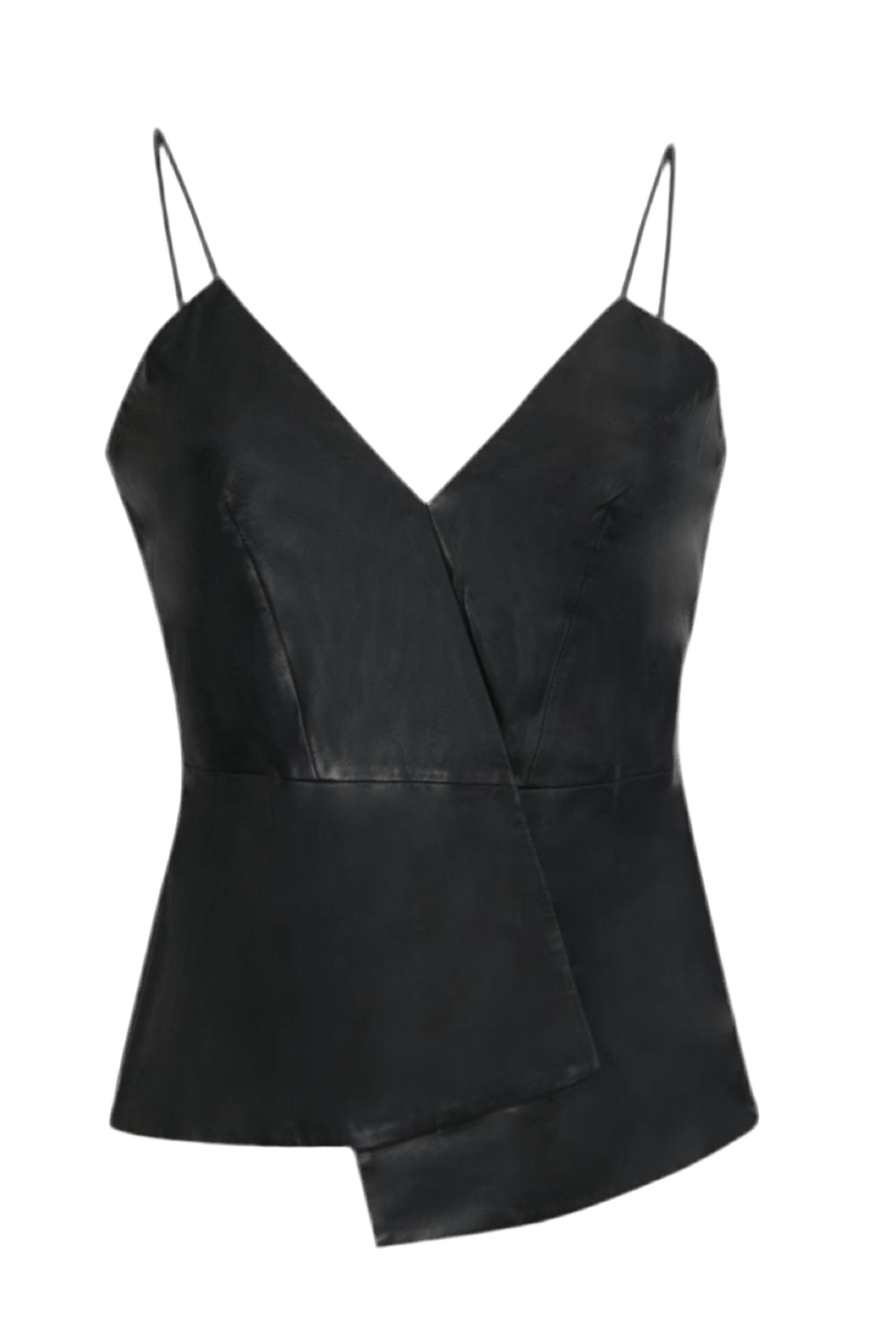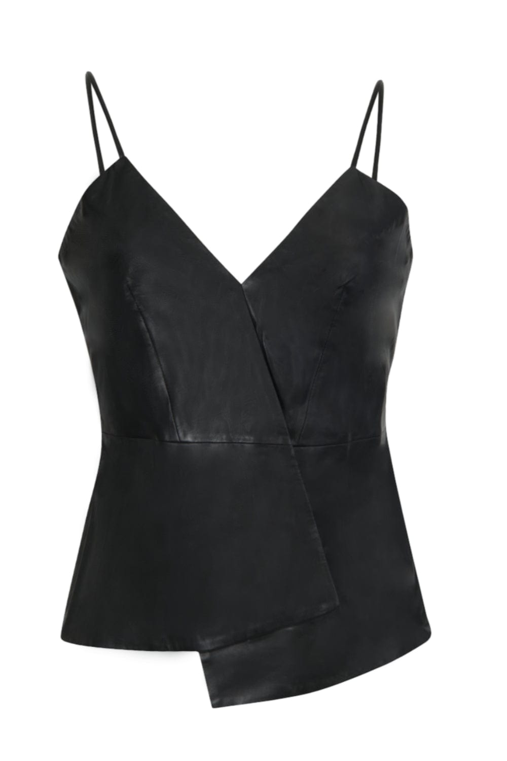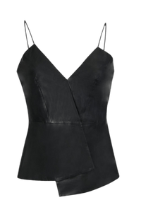 Lamarque - Blusa Alça Fina Assimétrica Couro Erika Preto