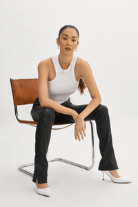 Sua calça de couro preferidas recebe uma nova atualização elegante.