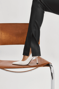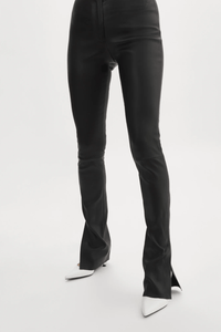 Cortado em couro de cordeiro elástico e flexível com ajuste de segunda pele, ela apresenta cintura alta e perna reta com bainha lateral dividida para um toque ousado.