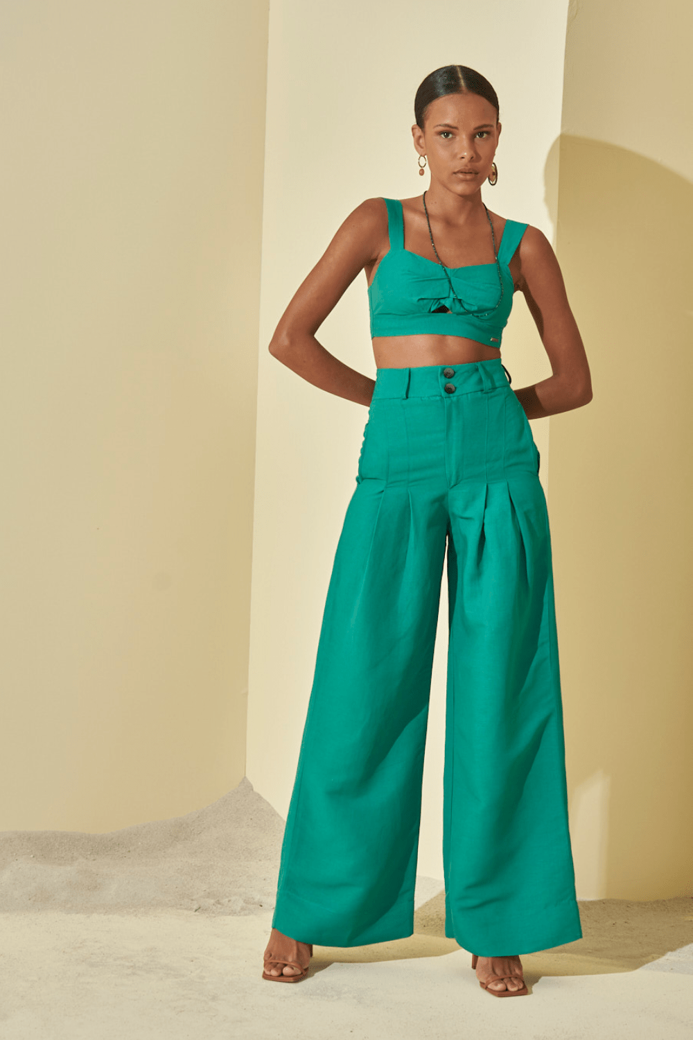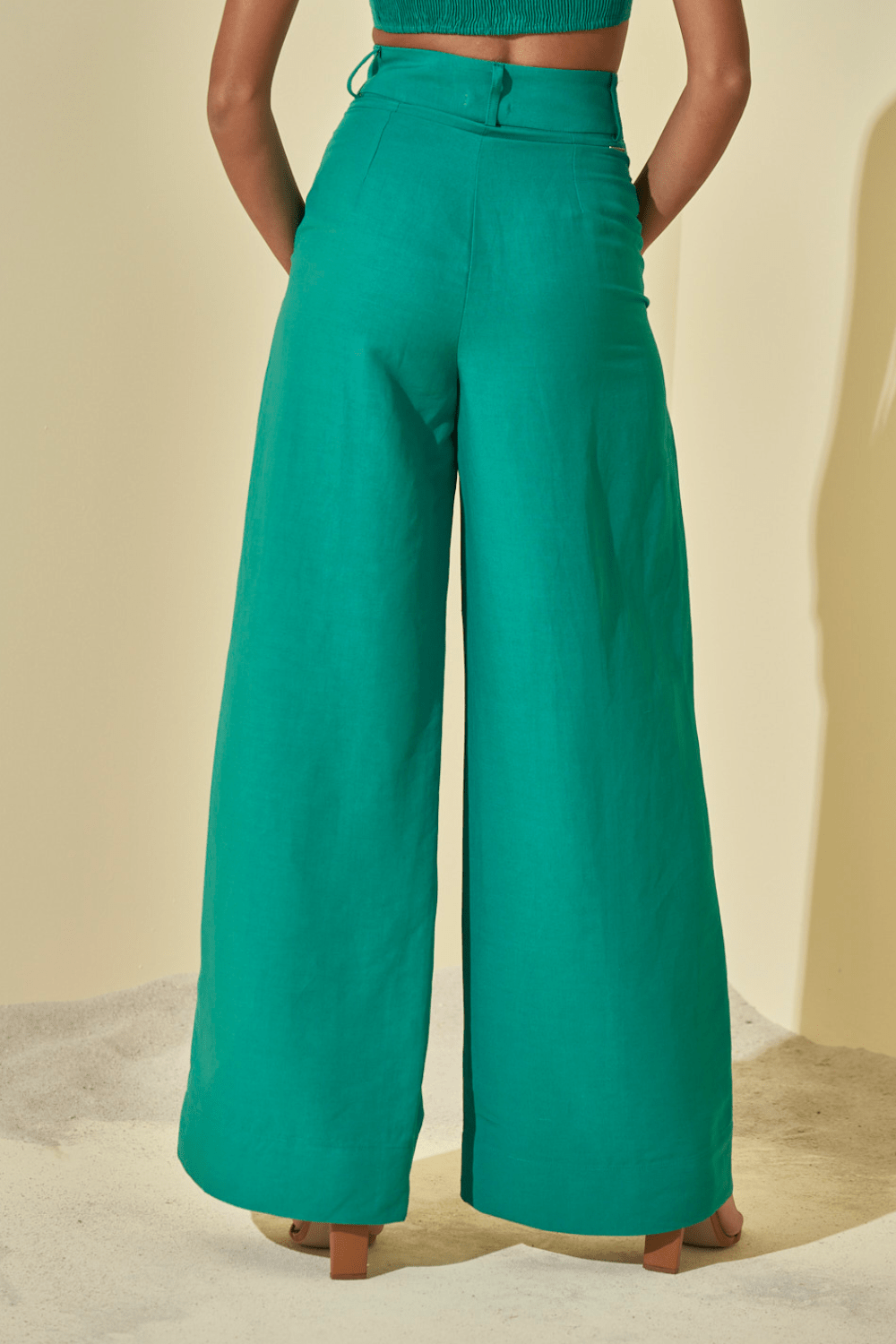 L'Cecci - Calça Pantalona Viscolinho Verde