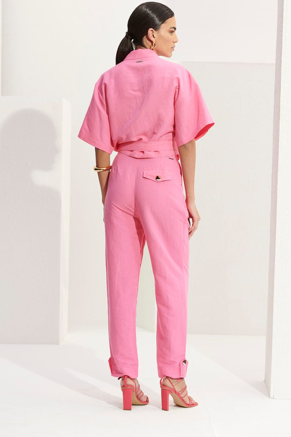 L'Cecci - Camisa Cropped Manga Curta Envelope Viscolinho Rosa