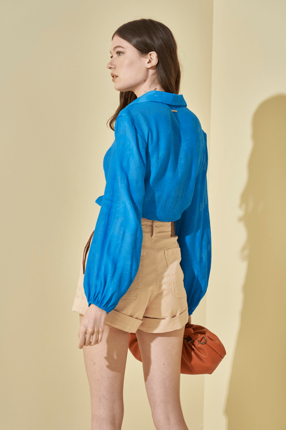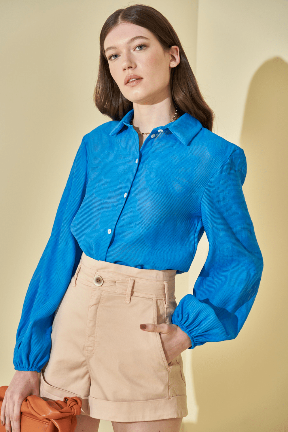 L'Cecci - Camisa Manga Longa Jacquard Azul